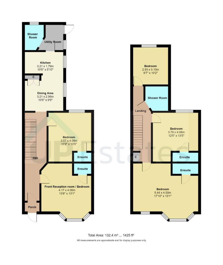 On the ground floor, the accommodation is equally versatile, with a front reception room that could serve as a fifth bedroom and also includes an en-suite, plus an additional double bedroom with en-suite to the rear. A kitchen/diner, utility room, and a further downstairs shower room complete the layout.