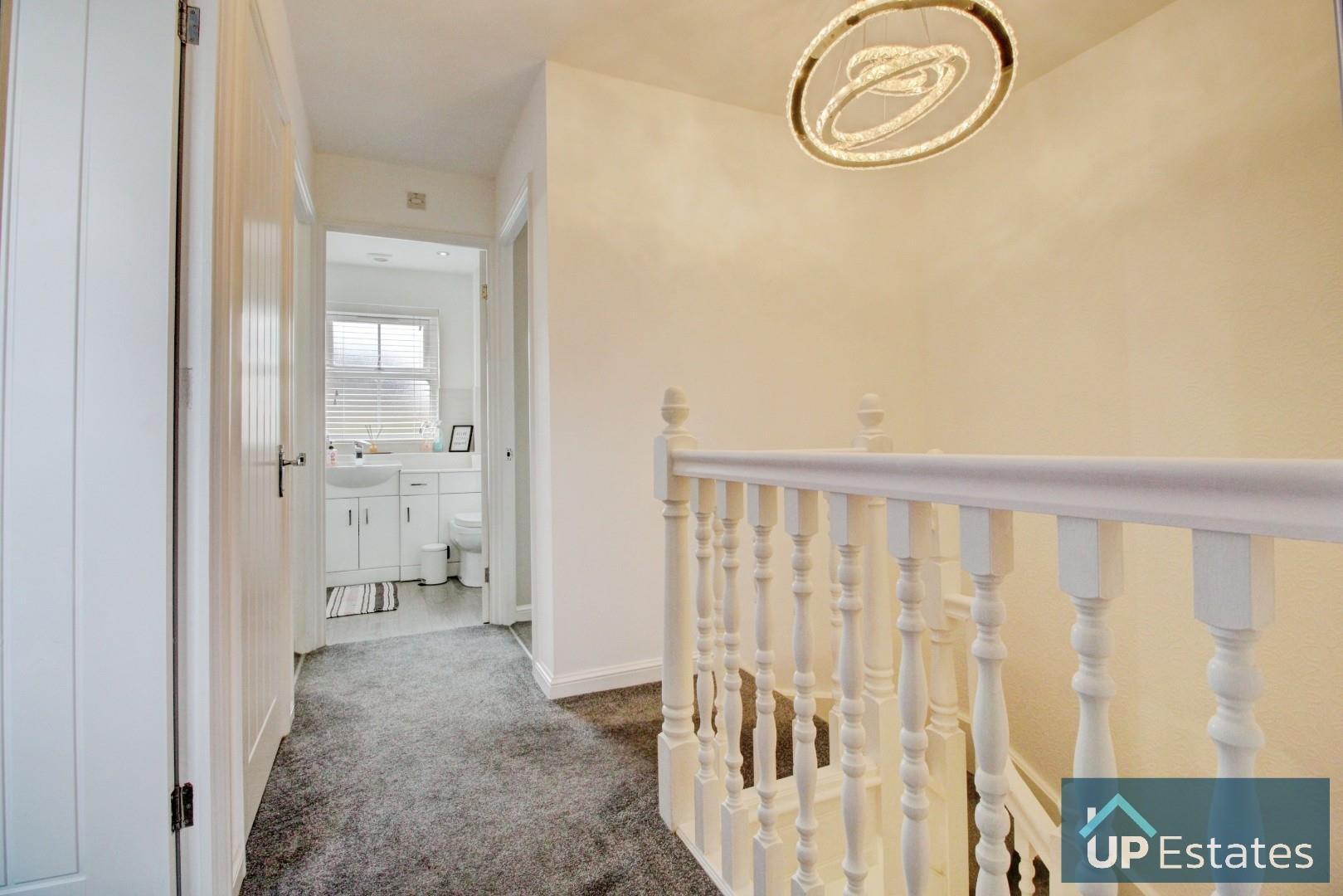 Upstairs, bedroom one comes complete with fitted wardrobes and a modern ensuite shower room. A second double bedroom with built-in wardrobes, a third double bedroom, a fourth bedroom, and a contemporary family bathroom complete the first-floor accommodation, along with a useful landing storage cupboard.