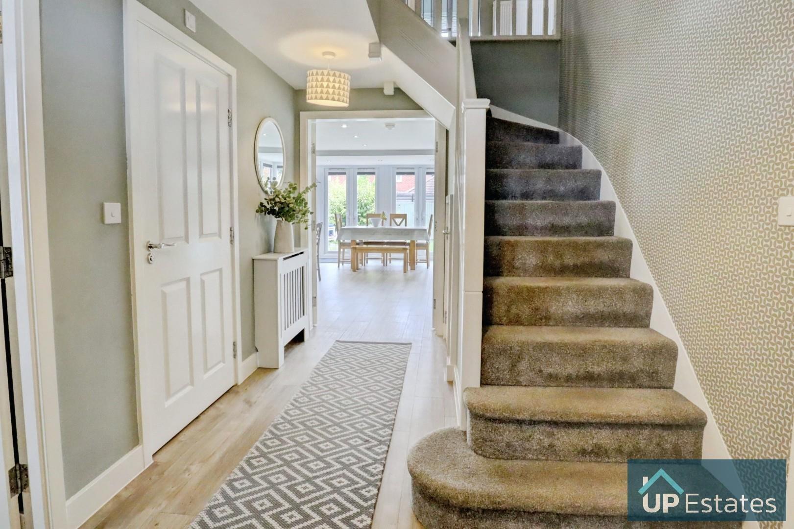 **BEAUTIFUL CONTEMPORARY GEORGIAN STYLE EXECUTIVE RESIDENCE - FOUR BEDROOMS (ONE EN-SUITE) - DOUBLE GARAGE & AMPLE DRIVEWAY - SOCIAL OPEN PLAN LIVING KITCHEN DINER** Built by well renowned local builder Davidsons Homes in 2018, this family home has an attractive frontage, landscaped rear garden and is located in one of Nuneaton's most desirable places to live - with schools, local shops, pubs and takeaways as well as field walks all on one's doorstep. The property has an impressive reception hallway leading up to a spacious galleried landing, with the benefit of four double bedrooms all with fitted wardrobes, including principal bedroom with an en-suite and walk in wardrobe/dressing area, creating quite the main bedroom suite. With built in storage cupboards, as well as handy utility room, and door into the double garage from the side of the house - this property is a prime example of style and practicality - call us to arrange your viewing today! CHECK OUT THE FLOORPLAN to understand the layout on offer and dimensions of the accommodation throughout.