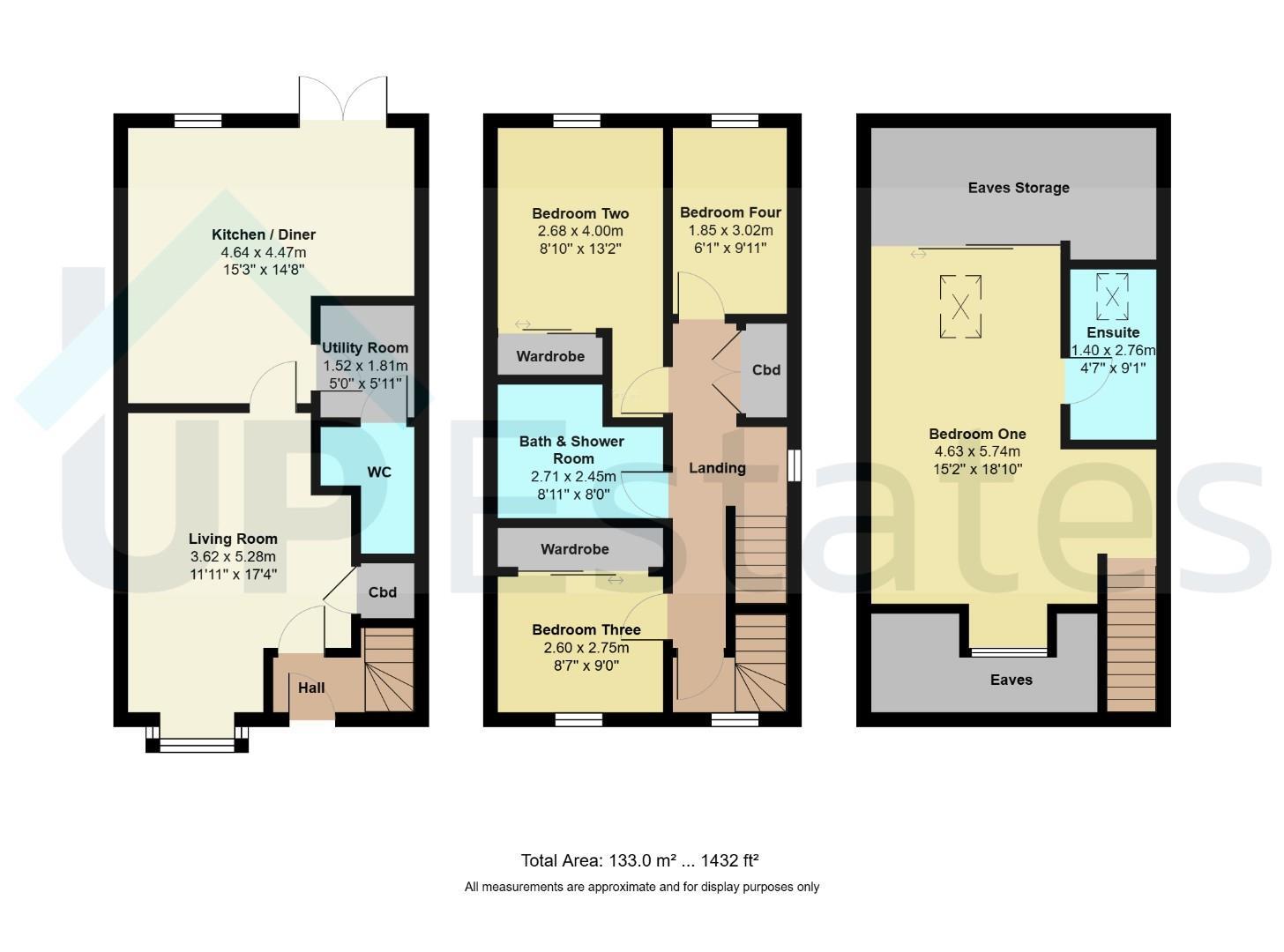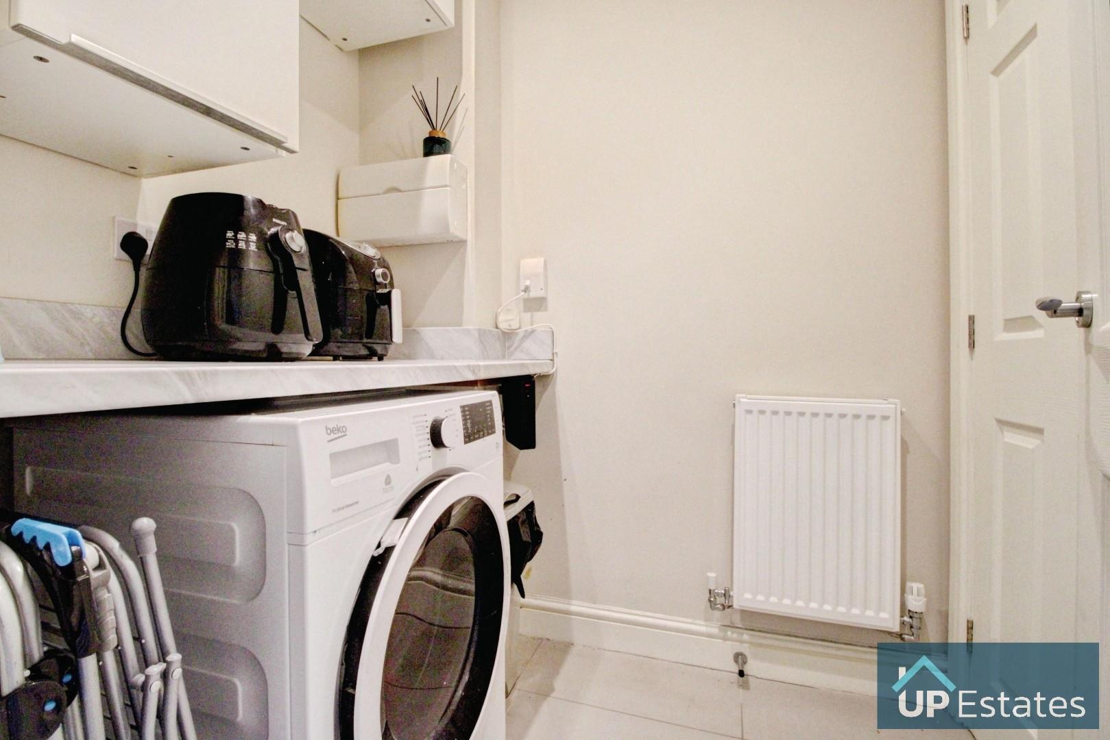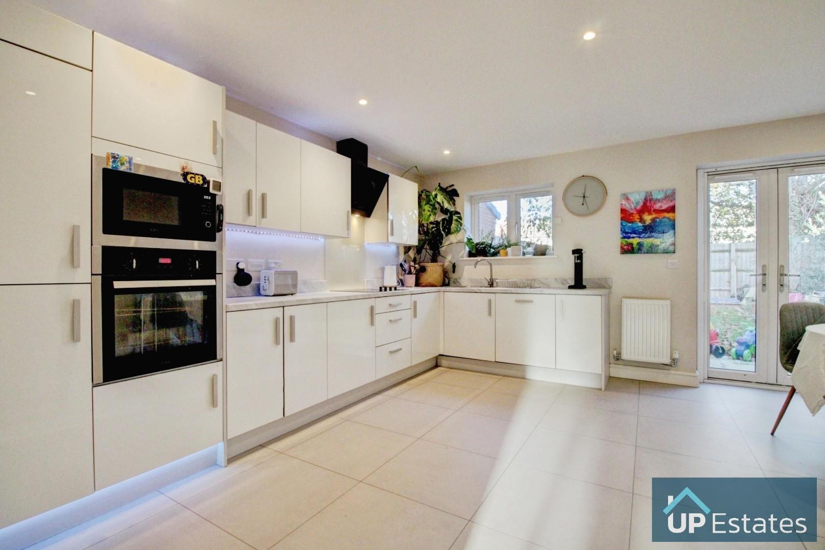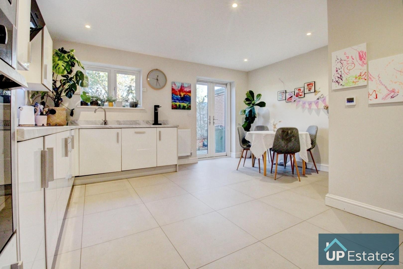 Upon entering via the hallway, you are greeted by a bright and comfortable living room. This flows seamlessly into the modern kitchen/diner, complete with stylish fitted units, ample worktop space and French doors that open out onto the private rear garden and patio—perfect for entertaining or relaxing outdoors. A convenient ground-floor WC and separate Utility Room completes the downstairs accommodation, ideal for busy family life. The kitchen, Utility & WC benefit from electric underfloor heating powered by the solar panels! The first floor features three generously sized bedrooms, two offering excellent built-in storage solutions, along with the family bathroom which provides both bath and shower facilities. The entire top floor is dedicated to the impressive main bedroom. This expansive room benefits from extensive built-in storage and a private En-suite, creating a luxurious and practical retreat. There is also further storage in the boarded remaining loft space.