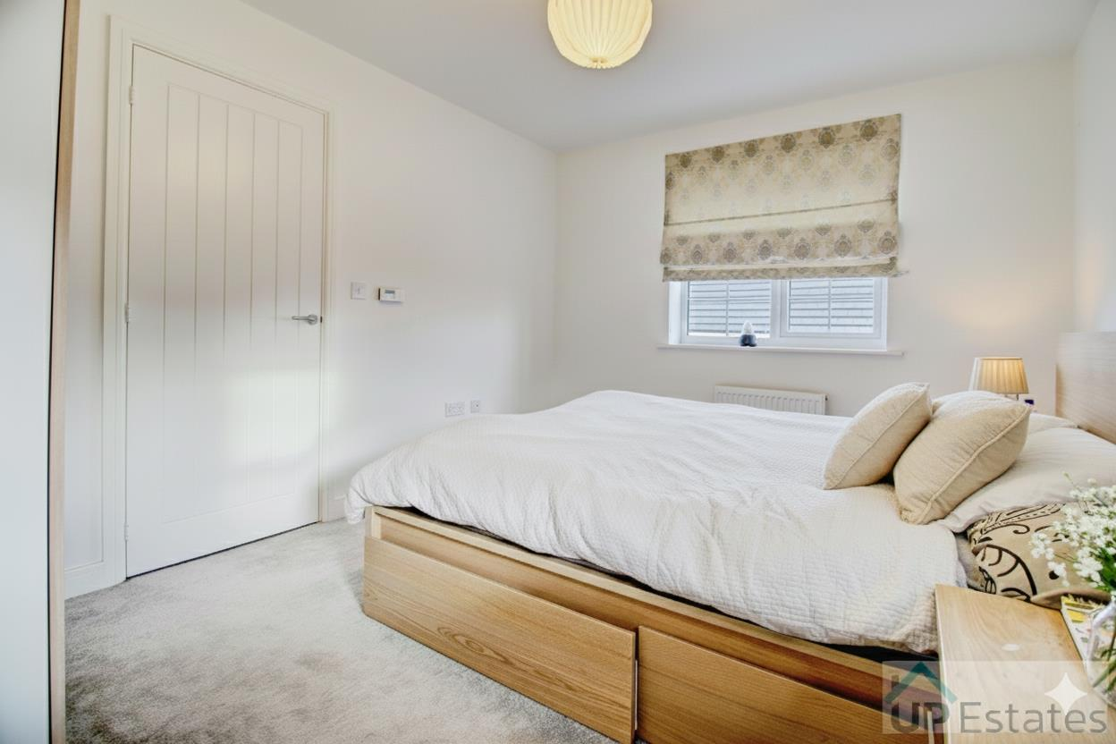 Upstairs, you’ll find three well-proportioned double bedrooms and a modern family bathroom fitted with a white suite and shower-over-bath, finished with sleek contemporary tiling. The primary bedroom further benefits from a large en-suite shower room.