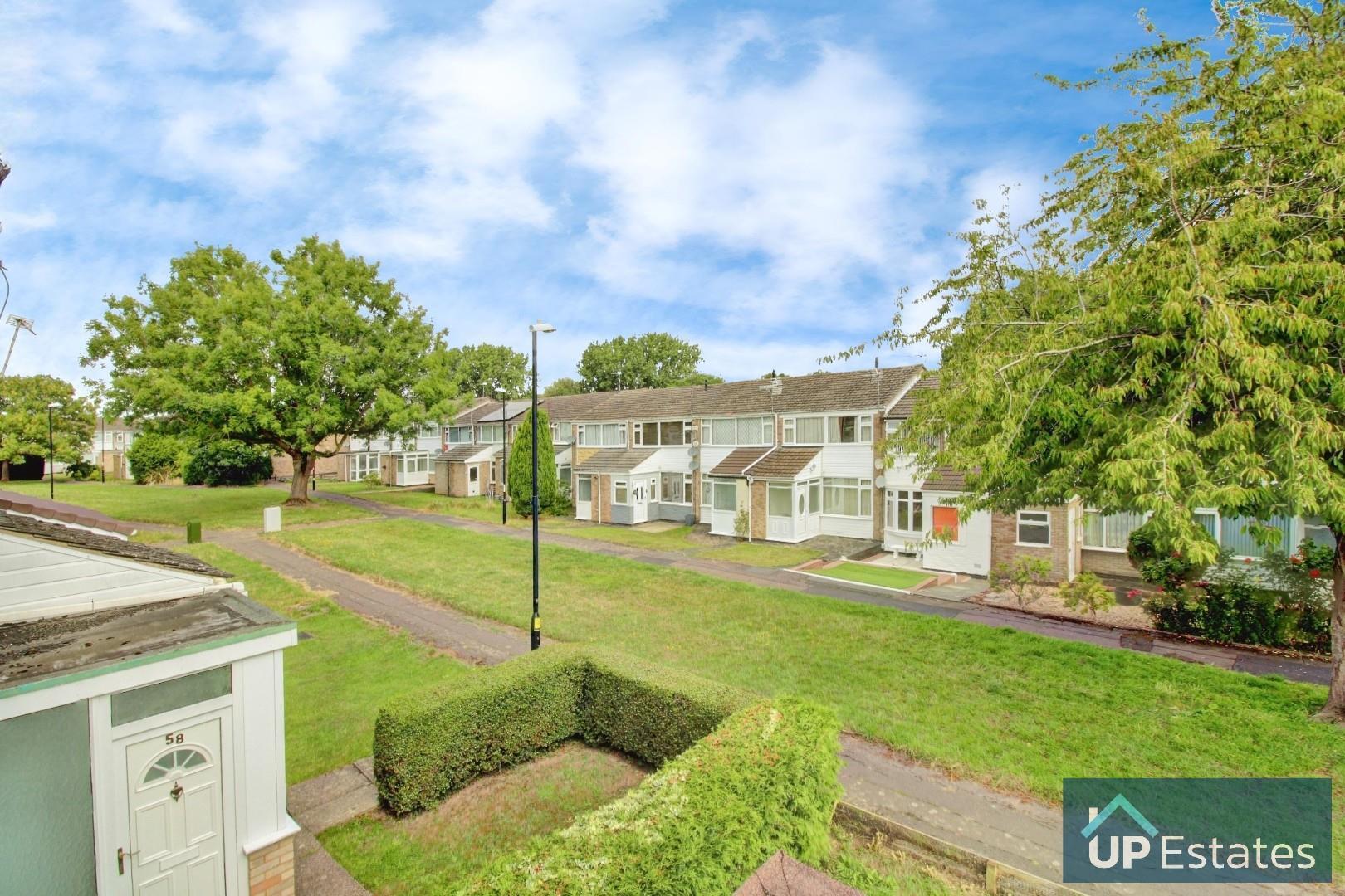 As you approach, the property enjoys a tucked-away position with a pleasant green to the front, providing a peaceful and leafy aspect. The entrance porch leads into a spacious lounge diner, followed by the bright kitchen breakfast room ideal for everyday living, with views and access to the rear garden—perfect for entertaining or relaxing in the warmer months. A separate rear lobby provides additional practical space and convenient garden access.