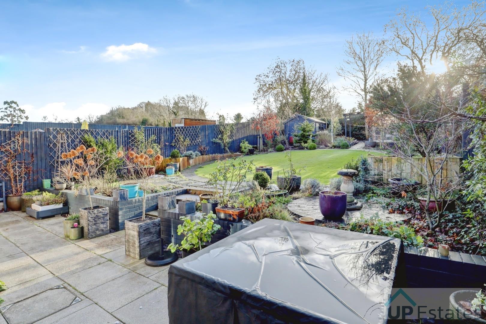 Outside - Maturing landscaped south facing rear garden with a host of shrubbery, flowers and lovely non overlooked position, two seating areas, patio, artificial lawn and of a well proportioned size for a recently built property.