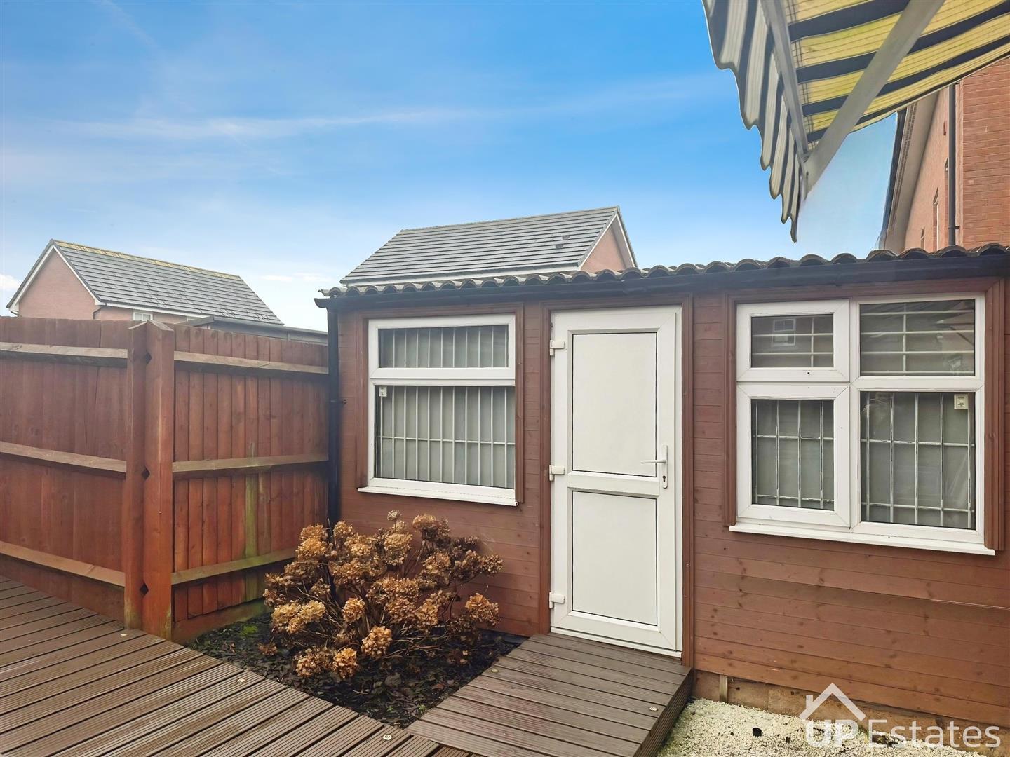 Externally, the property benefits from a tandem driveway, providing easy off-street parking, and a beautifully landscaped rear garden, perfect for summer evenings. A purpose-built outbuilding with double-glazed windows offers additional storage or workspace.