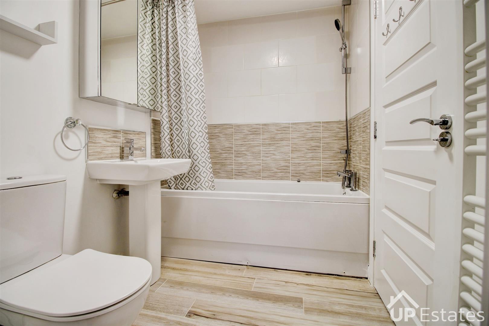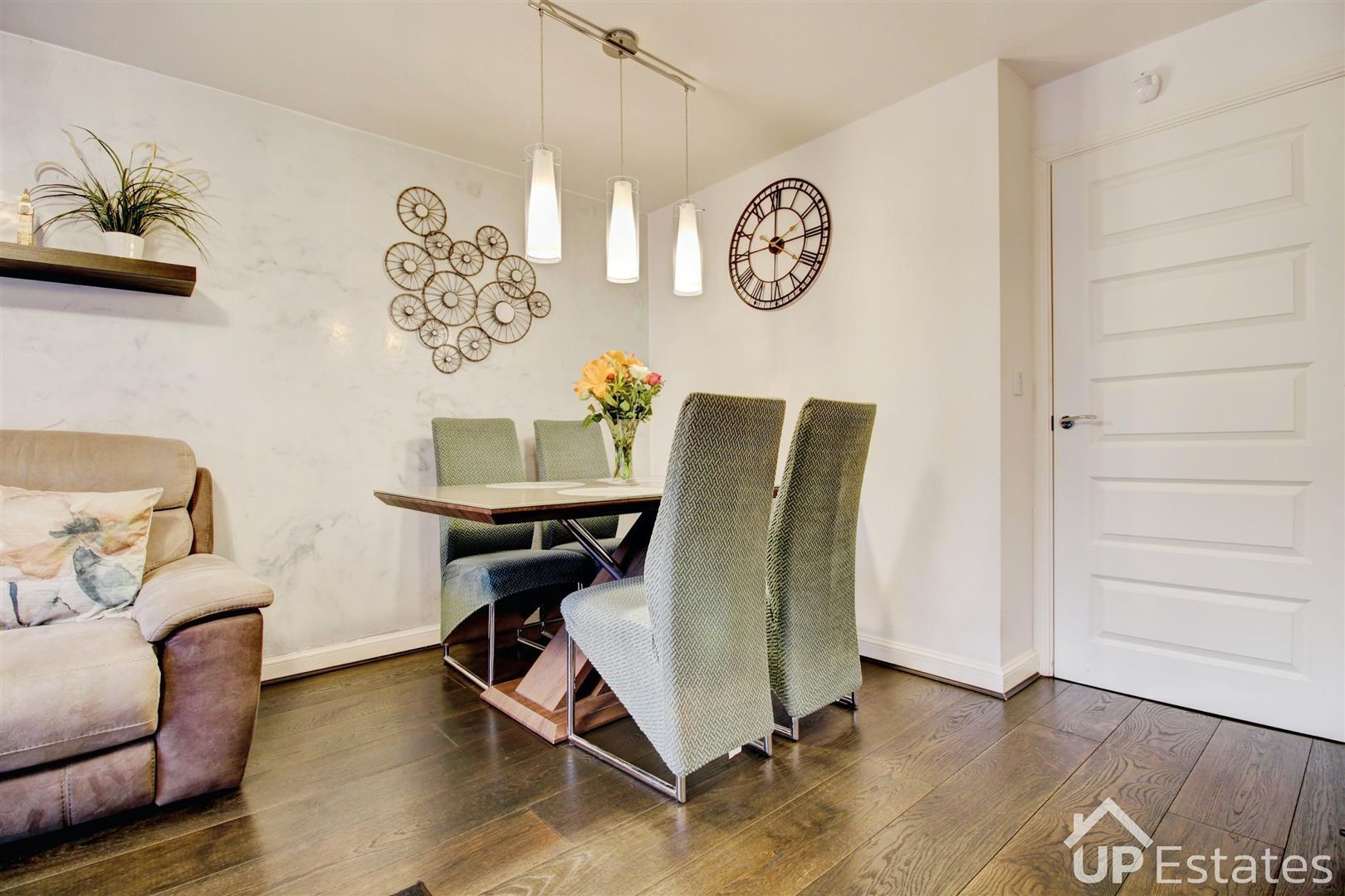 The stylish kitchen is a chef’s dream, equipped with sleek integrated appliances including an oven, hob, extractor, and dishwasher. With abundant storage and elegant work surfaces, it provides a practical yet sophisticated space for cooking and entertaining.