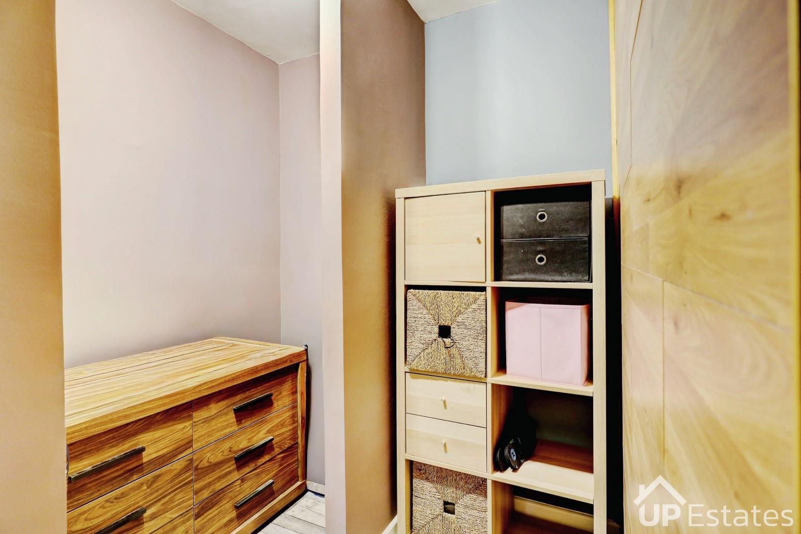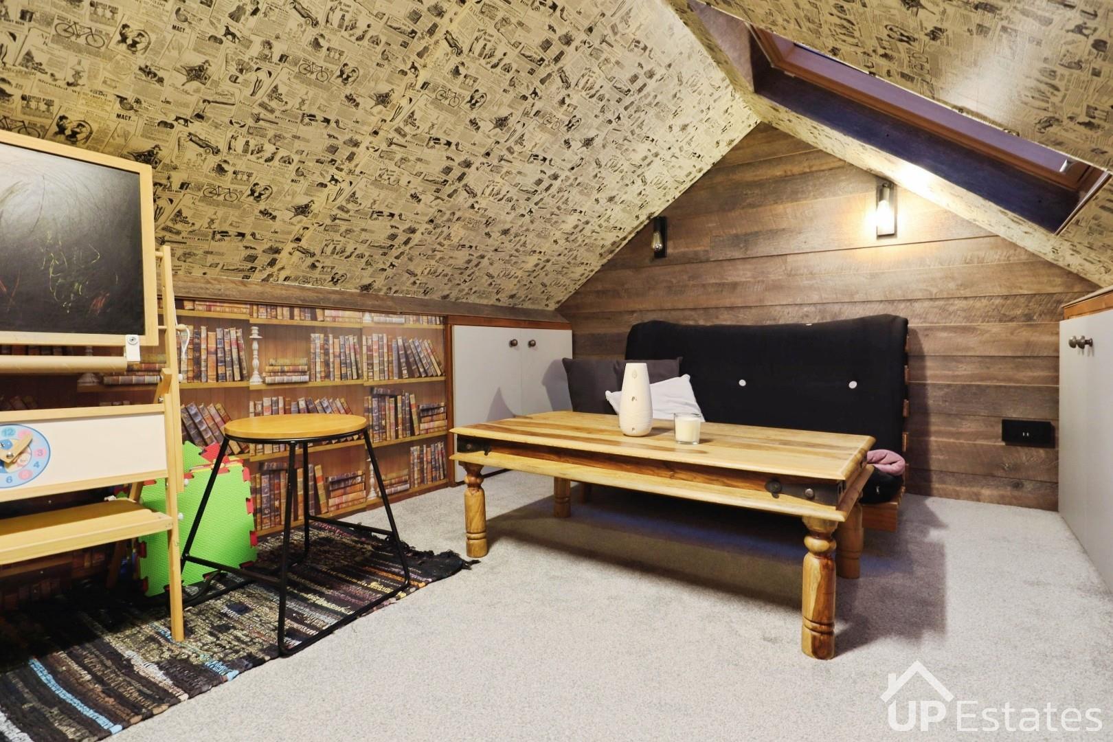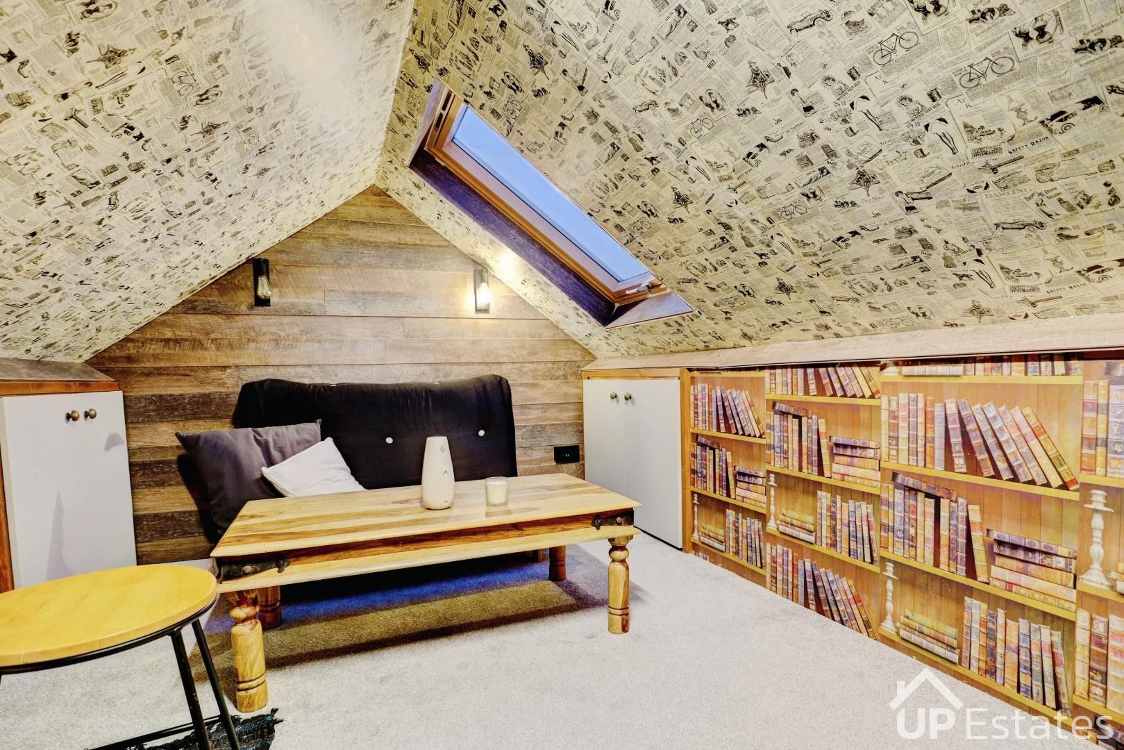 Upstairs, there are two generous double bedrooms, with the second bedroom benefiting from built-in storage and the main bedroom enjoying its own dressing area. The loft space has been fully boarded, carpeted, and fitted with skylights and eaves storage, offering excellent additional space.