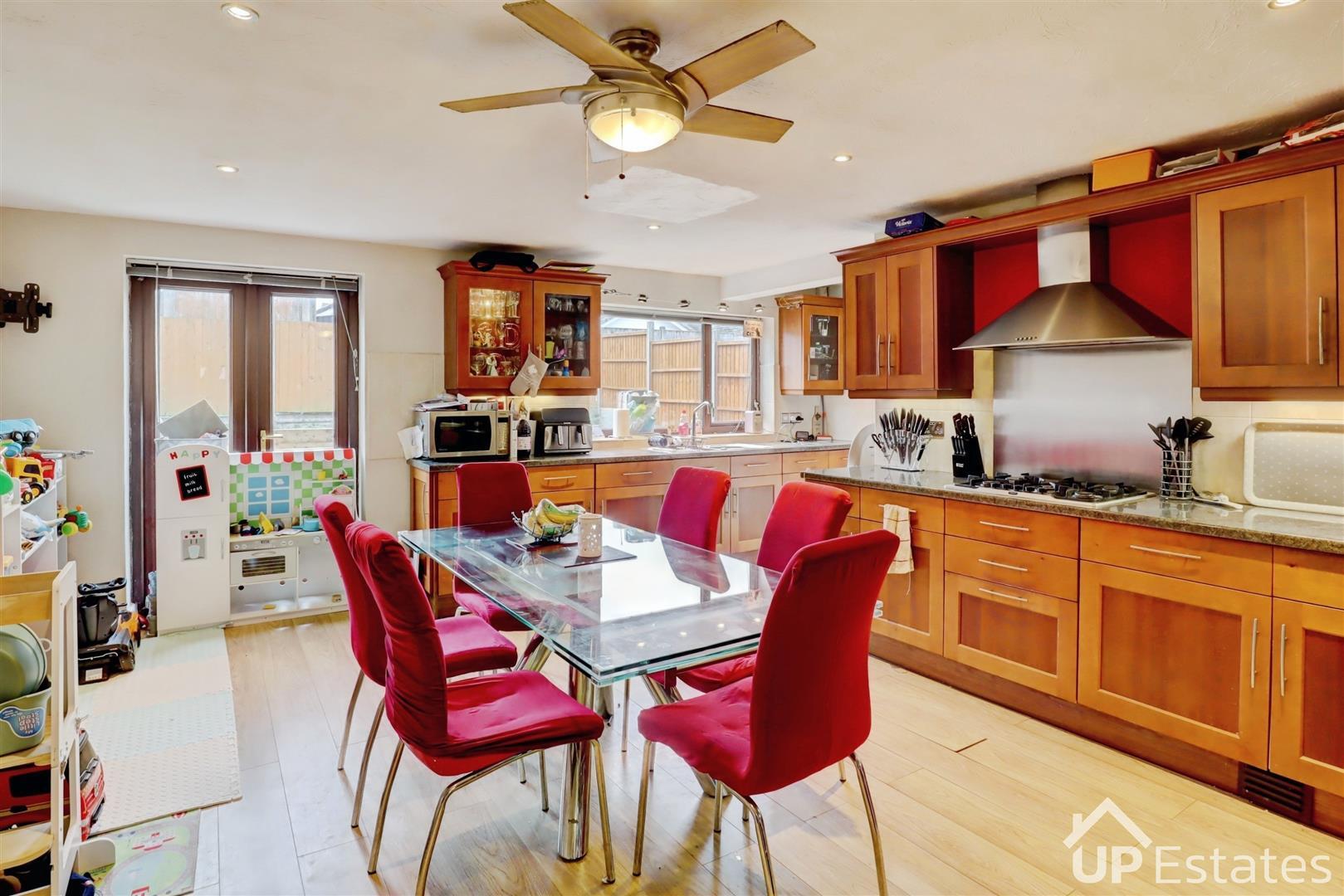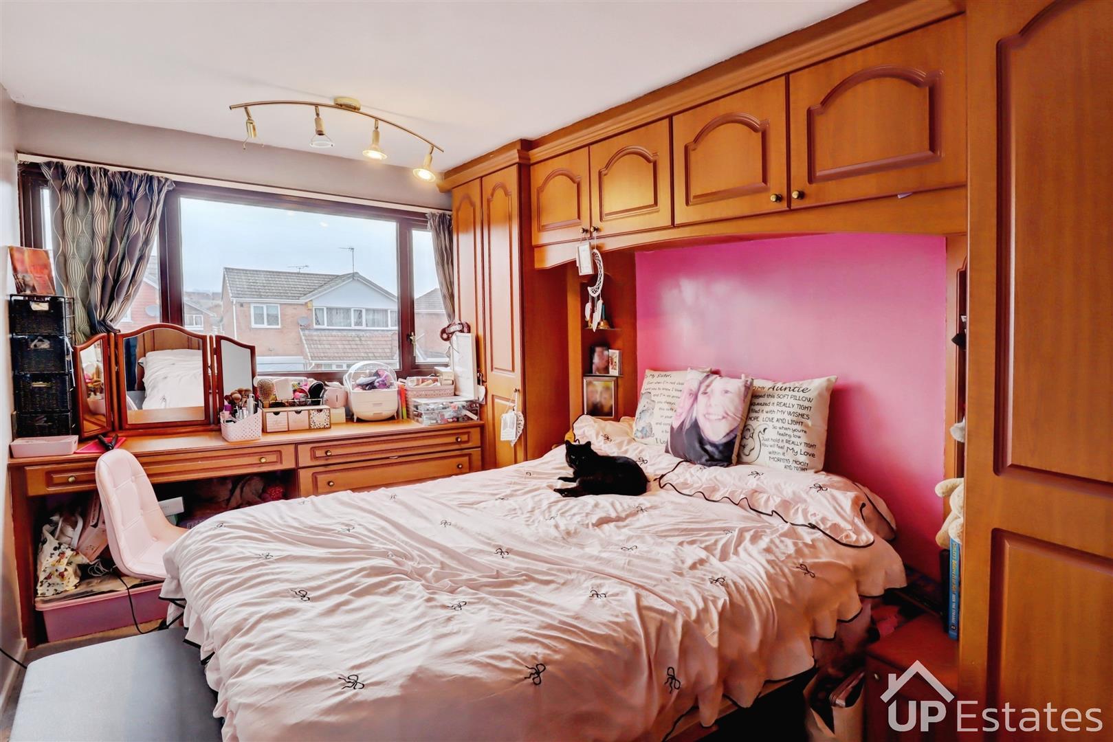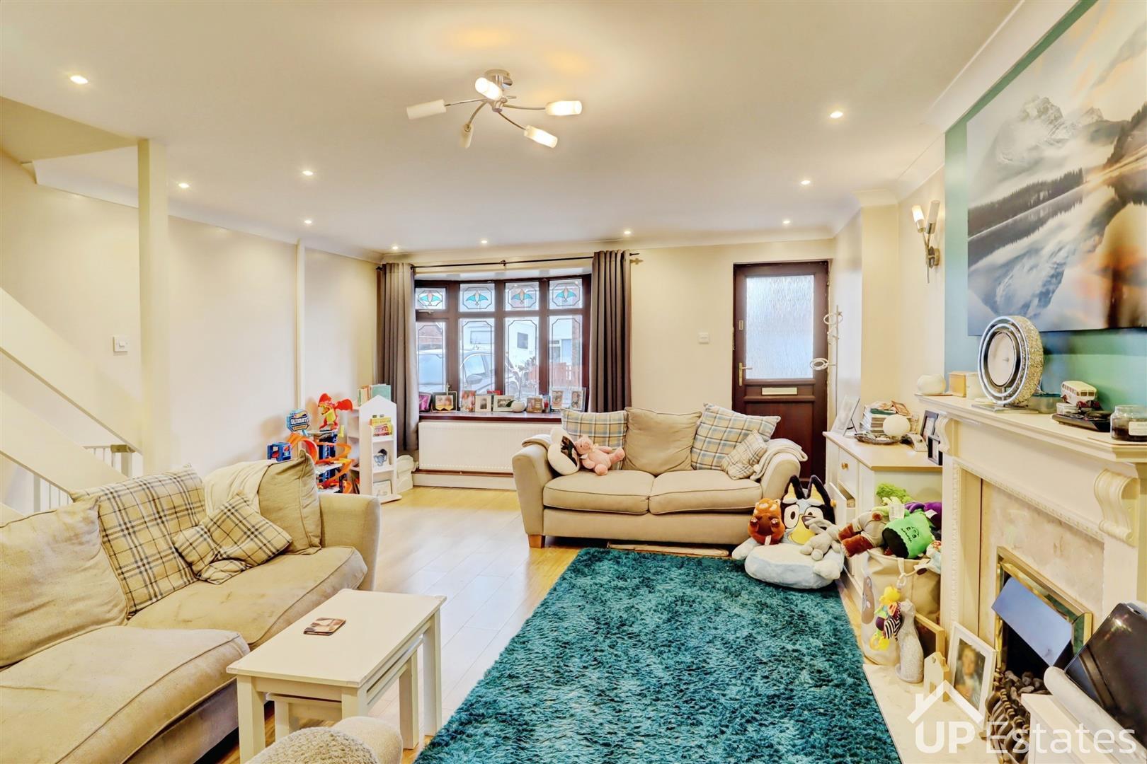 This lovely property welcomes you into a bright and spacious living room, providing a comfortable space to relax and unwind with the family. This flows seamlessly through to the large kitchen/diner, a real heart of the home, featuring a range of fitted kitchen units, ample worktop space, and plenty of room for a dining table. French doors open directly onto the rear garden, flooding the space with natural light and creating a perfect setting for entertaining, dinner parties, or social gatherings. The ground floor also benefits from additional cupboard space, ideal for use as a cloakroom or pantry. To the first floor, the property offers three well-proportioned bedrooms, benefiting from built-in storage for added convenience. Completing the upstairs accommodation is a spacious family bathroom, featuring both a bath and a separate shower—perfect for busy family living.