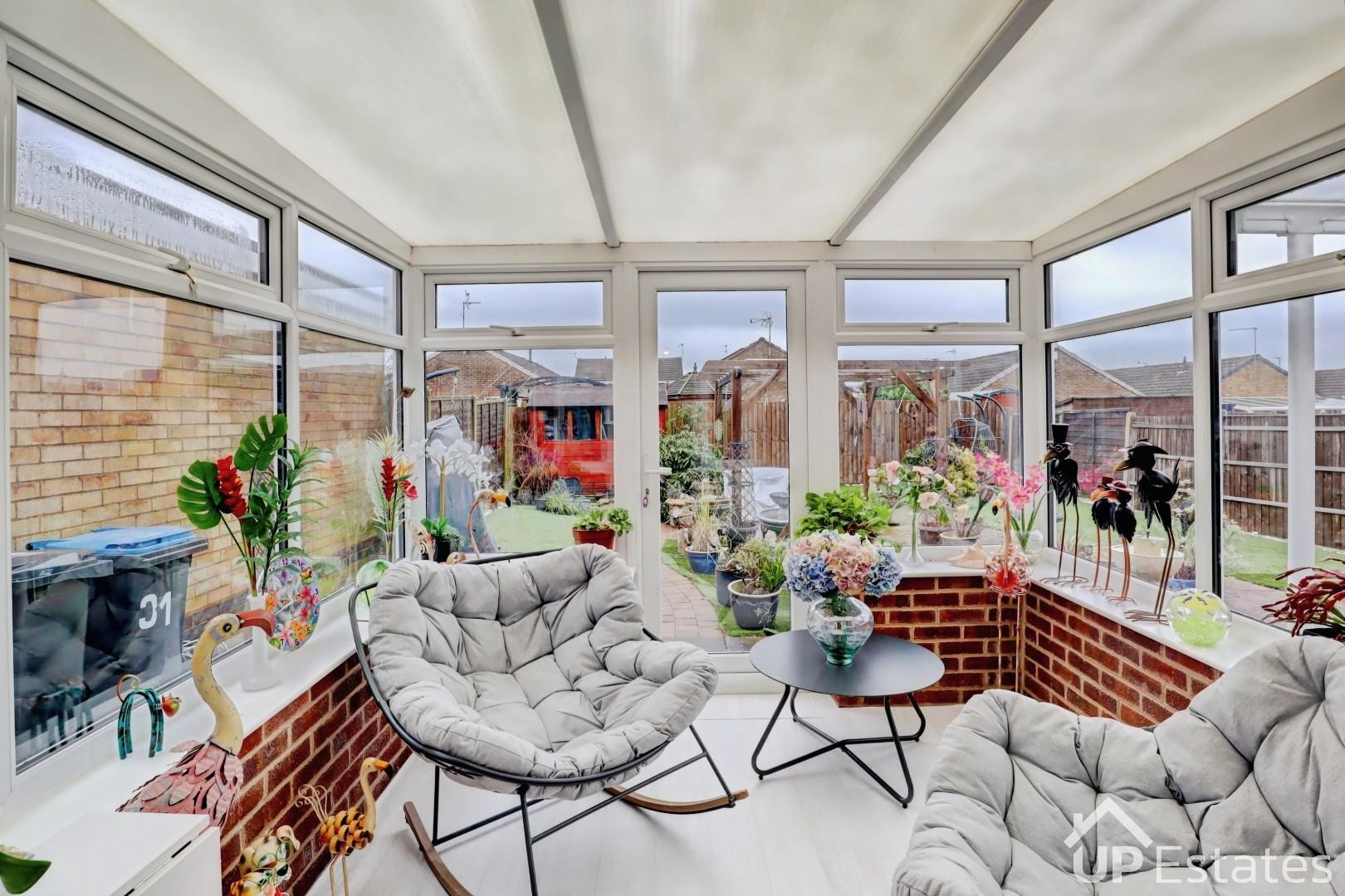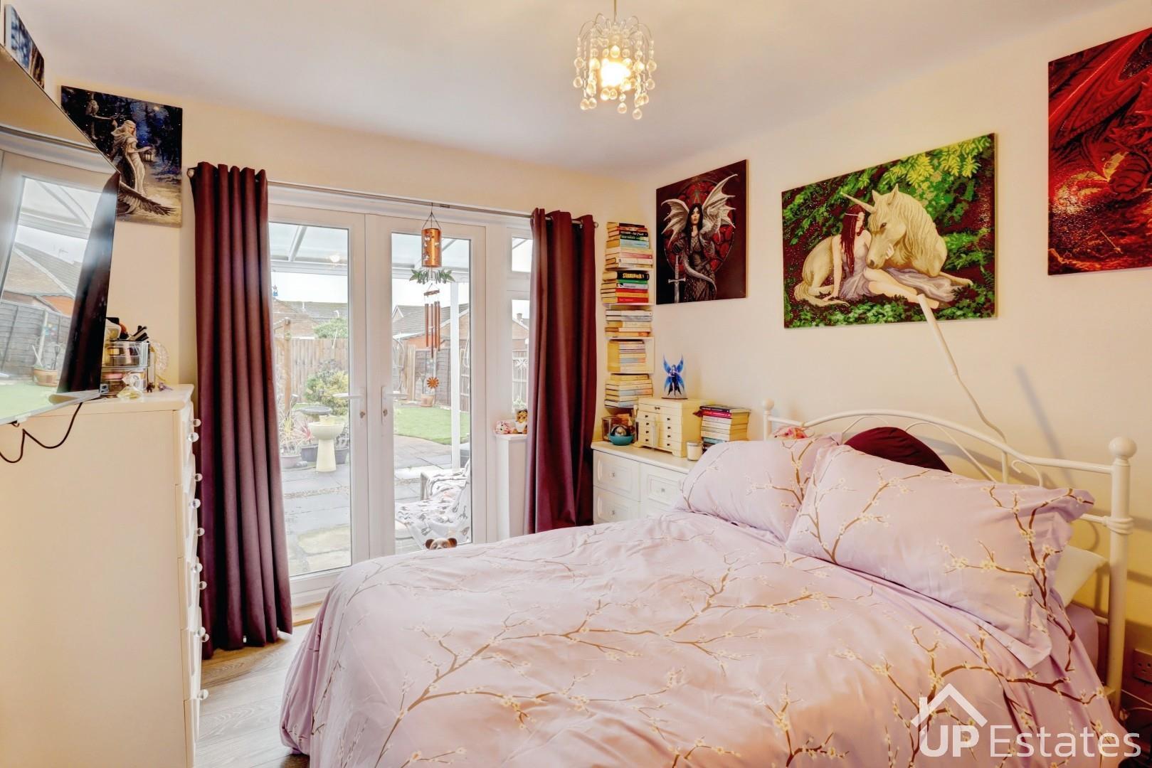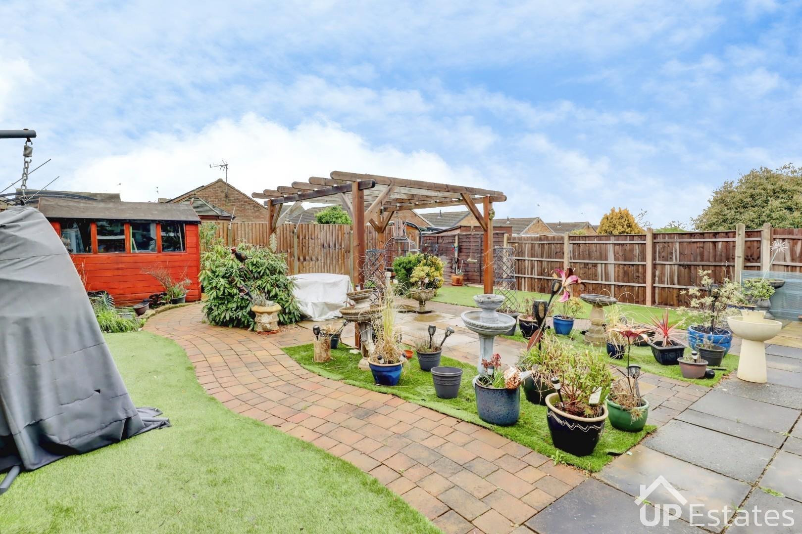 Both bedrooms are generously sized and overlook the attractive, low-maintenance rear garden. The principal bedroom is a standout feature, boasting French doors that open directly onto the garden, allowing natural light to pour in. The second bedroom enjoys access to a sun room at the rear, the perfect spot to unwind and enjoy the warmer months. Externally, the property continues to impress. To the front, a private driveway provides off-road parking for up to three vehicles and leads to a single garage, offering secure parking or additional storage, with access from both the front and rear. The enclosed rear garden is designed for ease of maintenance with artificial grass and features a central pergola, creating an excellent space for outdoor entertaining or peaceful relaxation. This beautiful detached bungalow presents an ideal opportunity for downsizers or those seeking single-storey living in a desirable location. This property has also undergone rewiring, refitted kitchen, central heating and windows within the last five years.