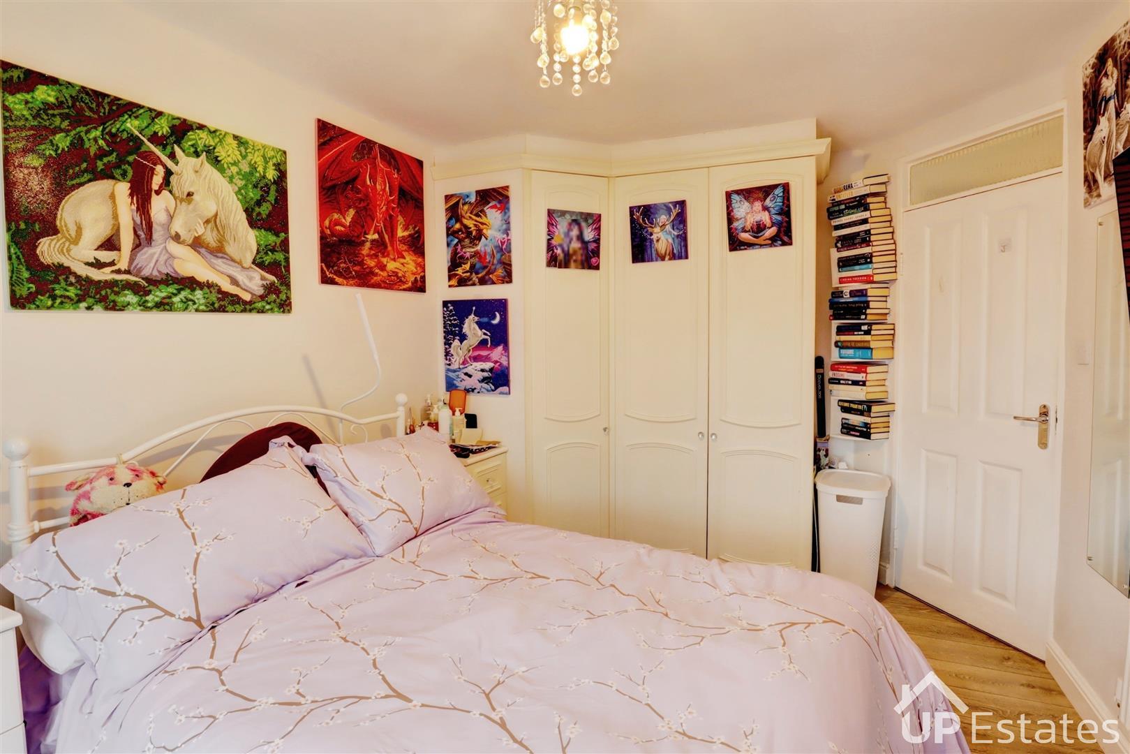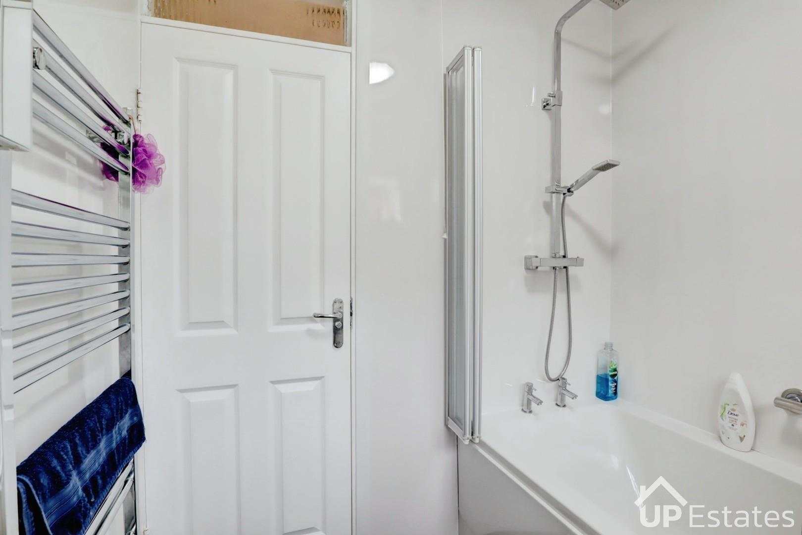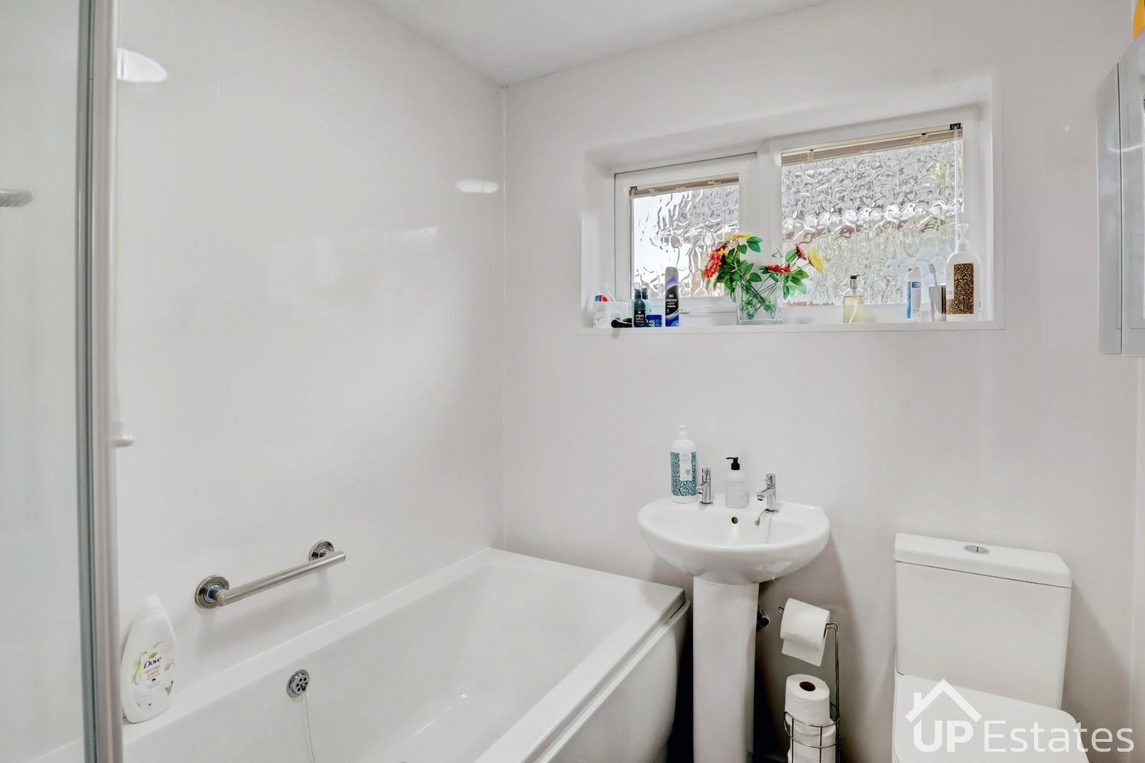 The bright and spacious living/dining room is positioned to the front aspect and benefits from large windows that flood the space with natural light, creating a warm and inviting setting for both relaxing and entertaining. Adjacent to this is the modern fitted kitchen, complete with contemporary units, built-in oven, and a newly integrated induction hob. The kitchen also provides convenient access to the side of the property. The family bathroom has been recently modernised to a good standard and features a bath with overhead shower and a sleek chrome heated towel rail.