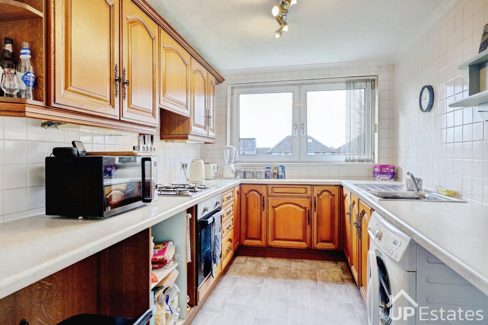 The property is accessed via a spacious entrance hallway, leading through to a large living and dining room with plenty of space to relax or entertain. The galley-style kitchen is well laid out and offers ample storage and worktop space. There are two large double bedrooms, both well proportioned, along with a family bathroom completing the accommodation.