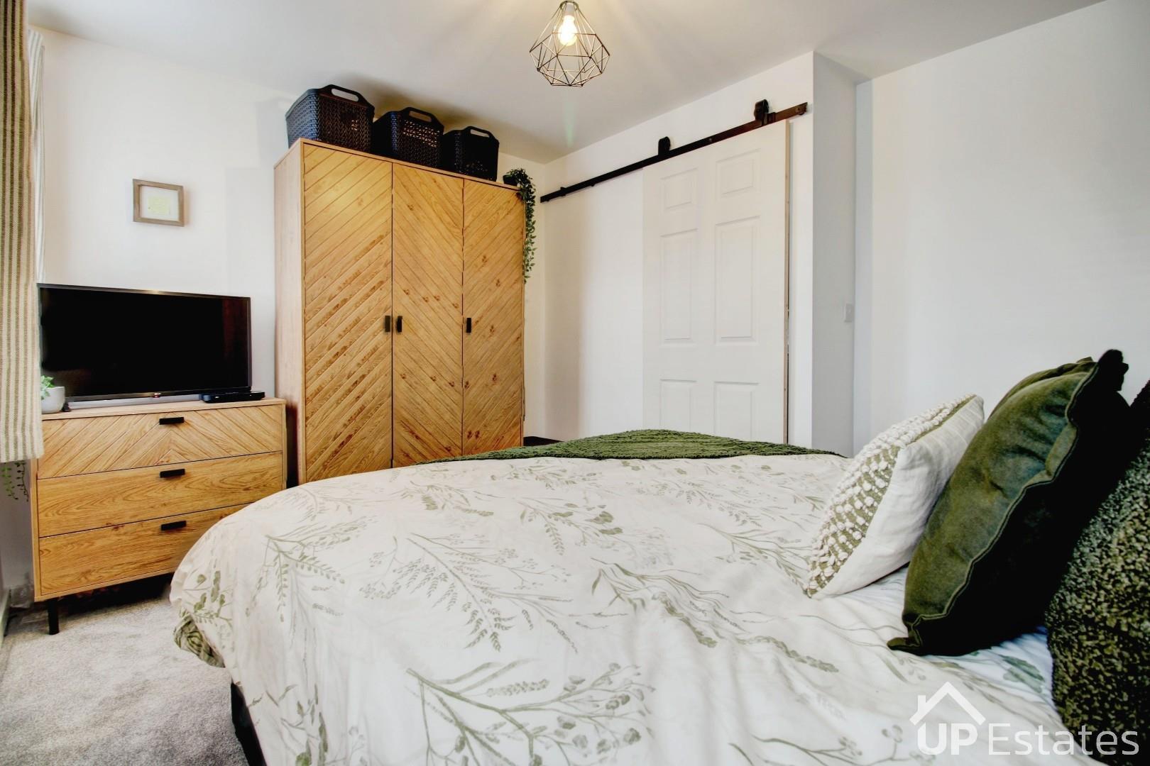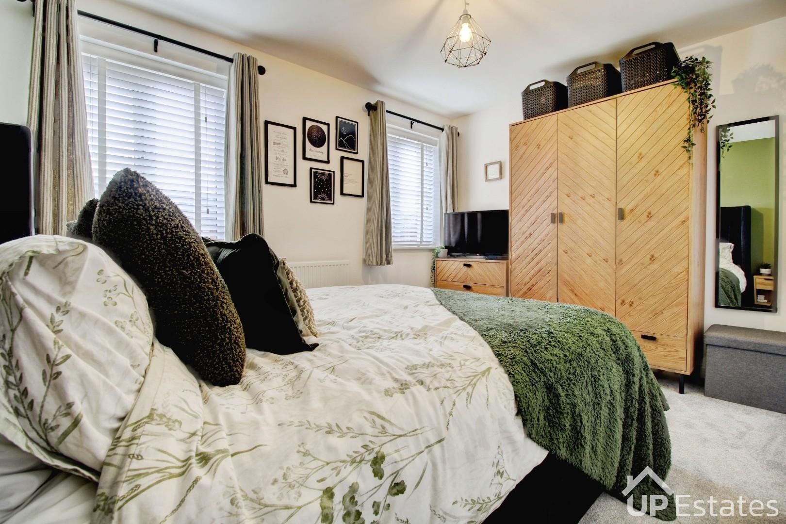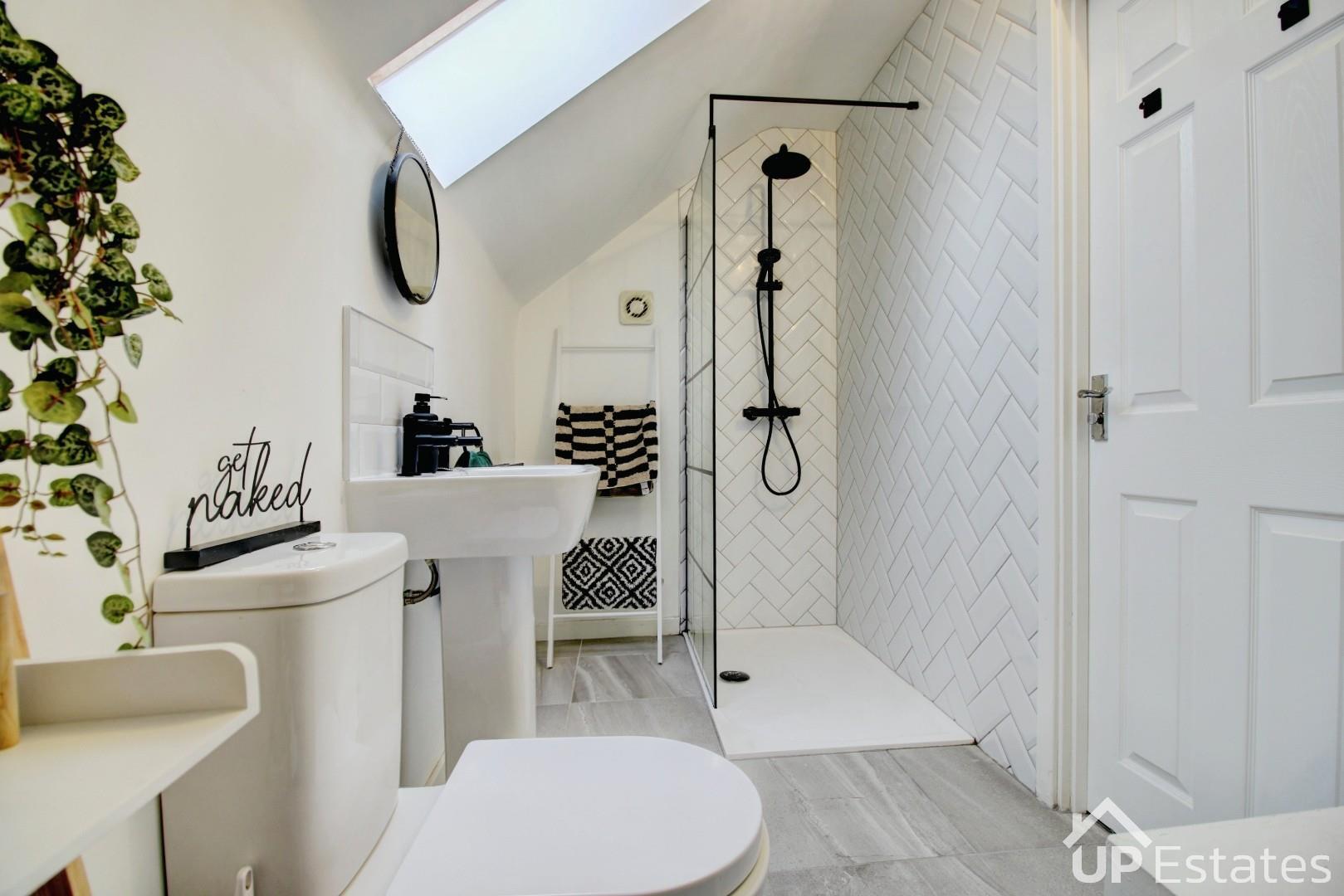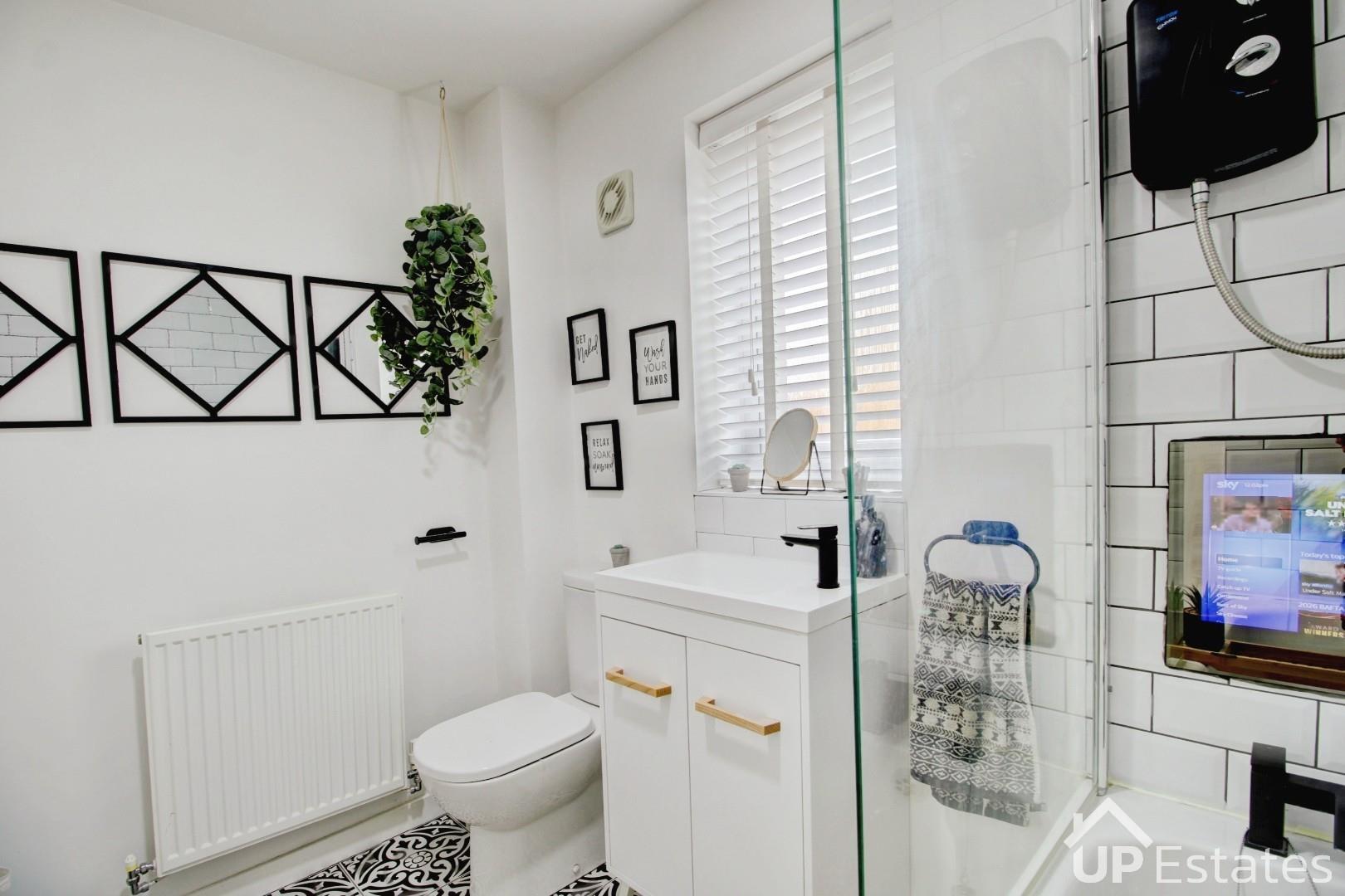 Moving to the first floor, the property continues to impress with two well-proportioned double bedrooms and a remarkable family bathroom. This luxurious space features a modern three-piece suite with a shower over the bath and an inset flat-screen TV—creating the perfect environment to unwind and enjoy a truly indulgent soak at the end of the day. Ascending to the top floor, you will find the primary bedroom bedroom, which benefits from a large built-in storage cupboard off of the landing and a sizable ensuite shower room. This private level provides a peaceful retreat, ideal for those who value space and comfort.