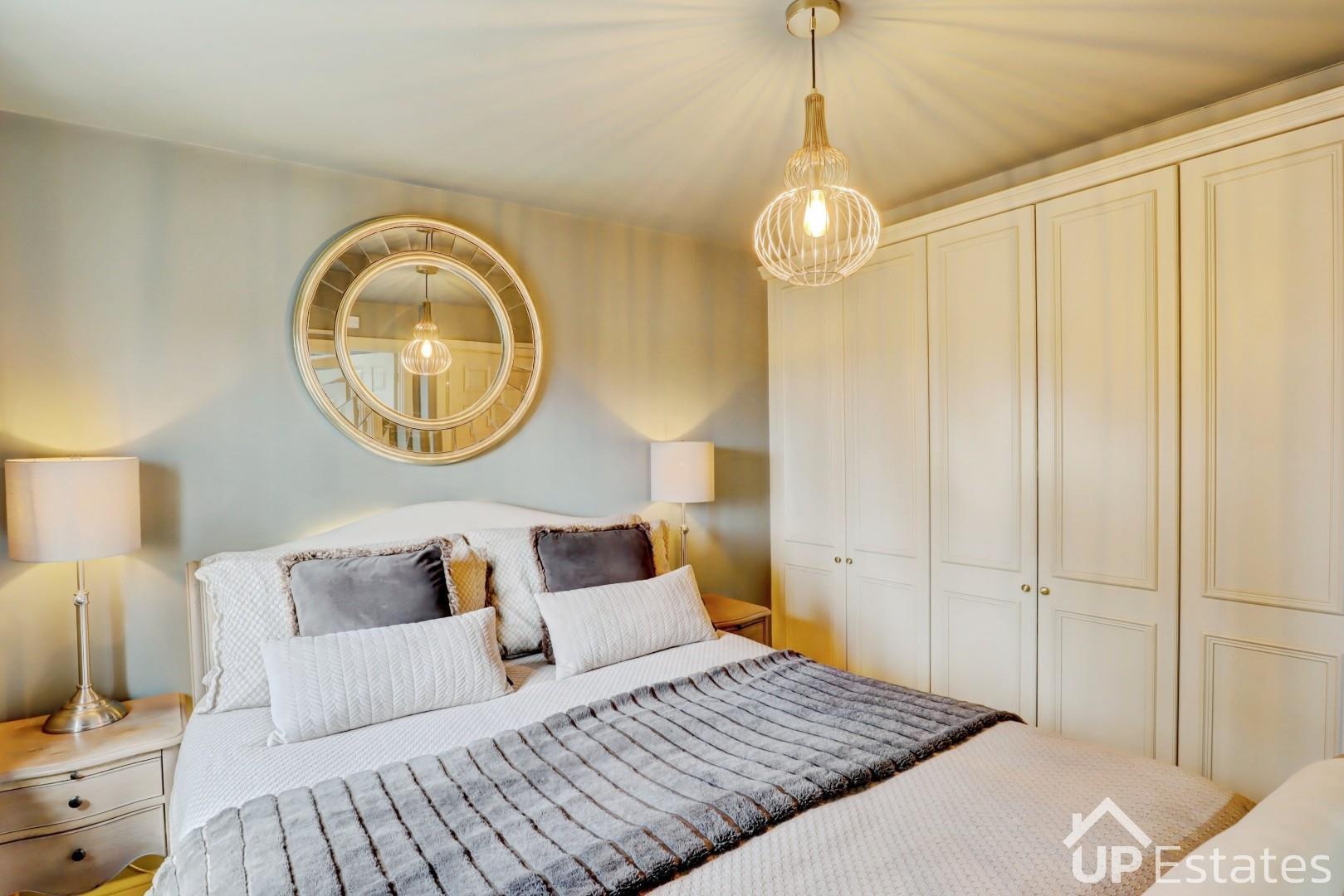 The ground floor welcomes you with a modern fitted kitchen, complete with an array of built-in units, a single oven and integrated microwave, providing both style and practicality. Adjacent to the kitchen is the bright and airy open-plan dining room, enhanced by large windows and sliding doors that open onto the garden/ patio area. This sociable layout is perfect for entertaining friends and family, especially during sunny afternoons when indoor and outdoor living blend seamlessly. A quirky WC and internal access to the garage complete the ground floor, with the garage offering excellent additional storage, secure parking options.