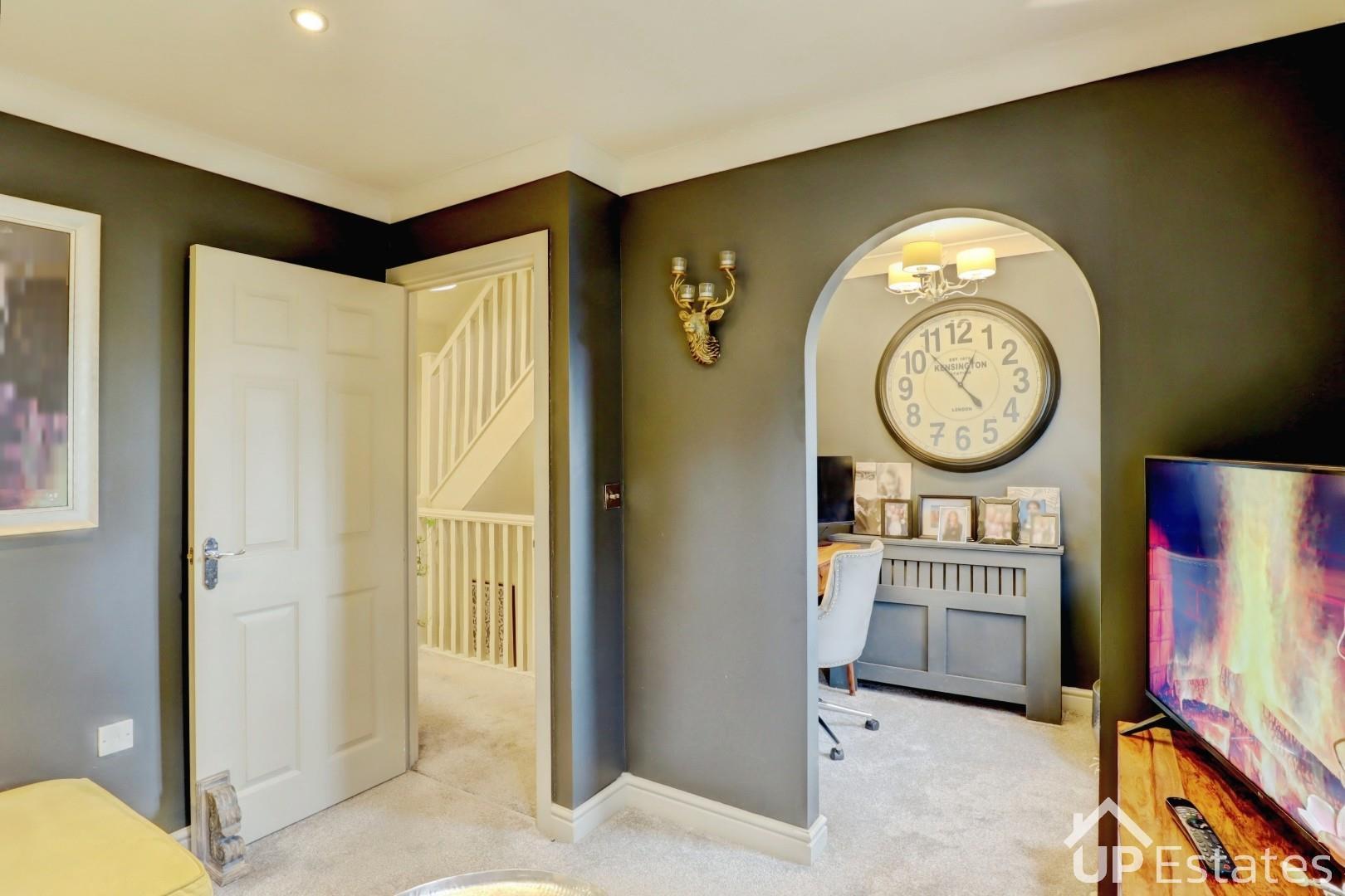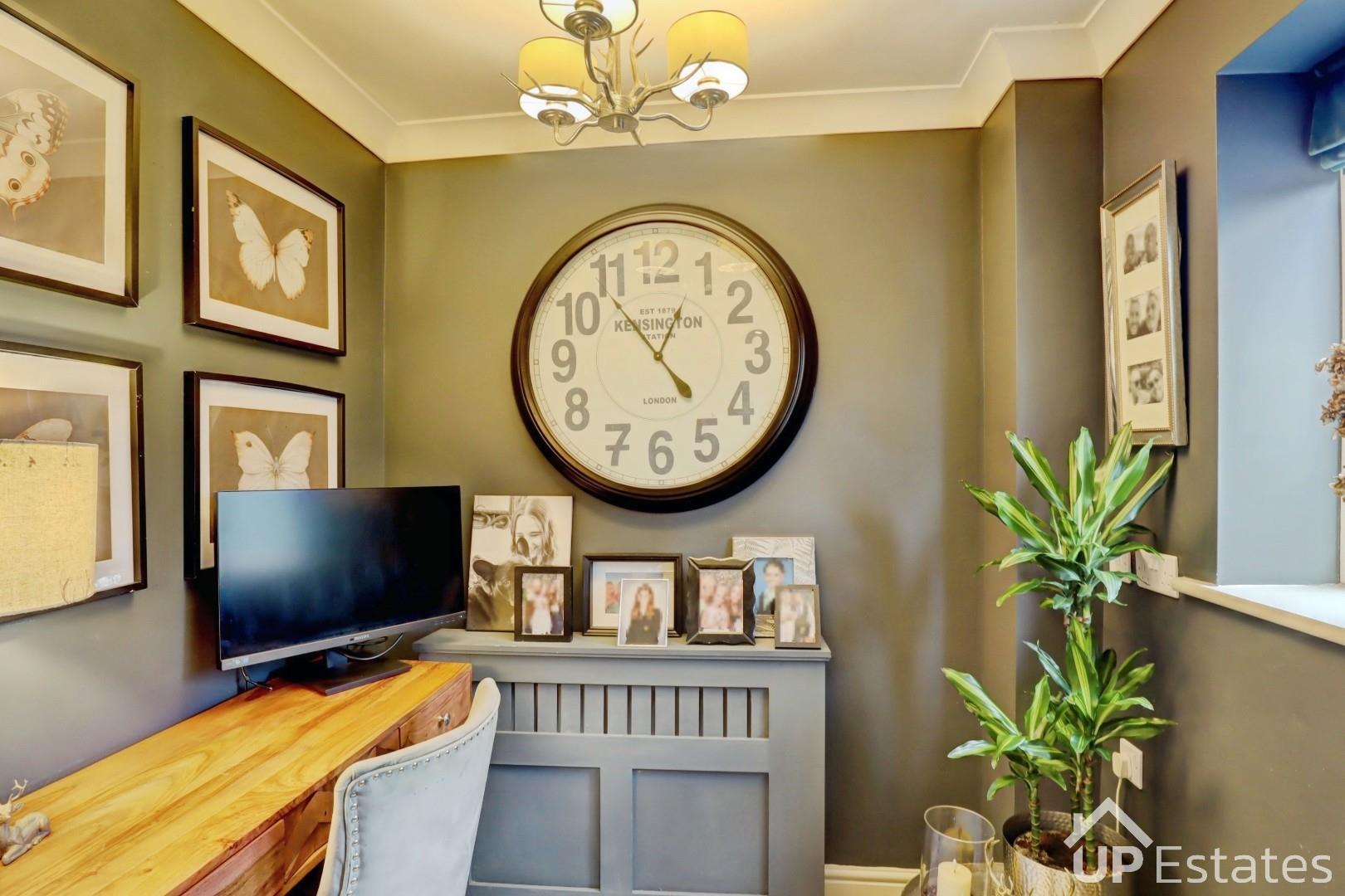 The first floor boasts a generous living room with views to the front aspect, providing a relaxing spot for the end of the day. There is also a cosy snug and study offering flexibility, easily utilised as a fourth bedroom if required. The second floor comprises three well-proportioned bedrooms. The principal bedroom benefits from fitted wardrobes and the luxury of a private en-suite shower room. A modern family bathroom serves the remaining bedrooms.