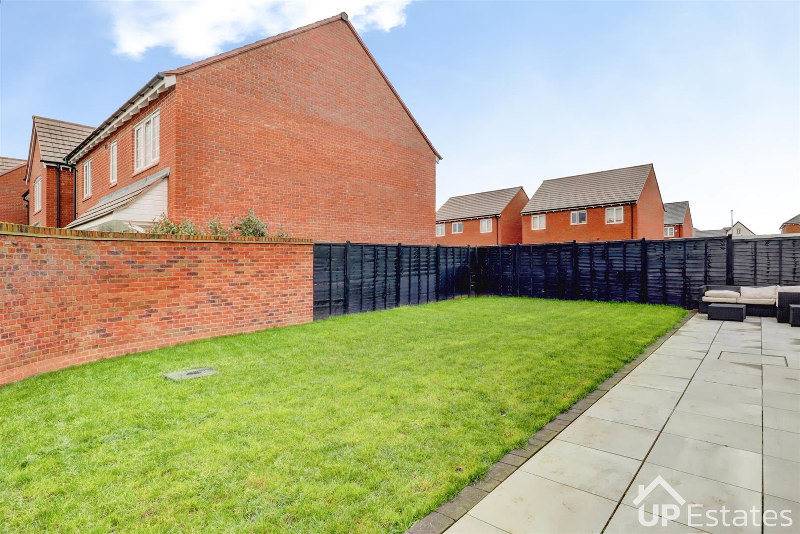 Externally, the property continues to impress with a good-sized rear garden and patio area — perfect for outdoor dining, family activities, and enjoying long summer days. The double garage benefits from electricity and provides secure parking and additional storage space. There is also off-road parking in front of the garage for two vehicles. This outstanding family home is ideally located close to well-regarded schools including Higham Lane Secondary School, with local amenities just a short drive away such as The Acorn Pub and Co-op Food.