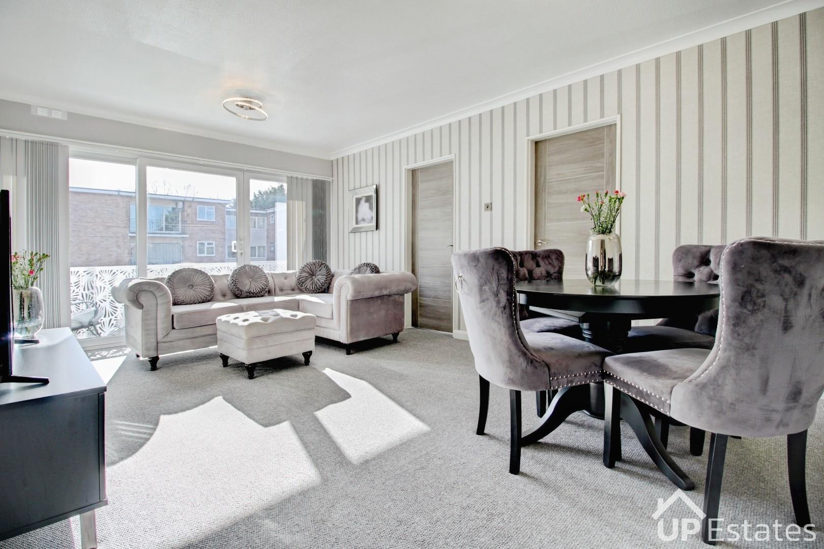 The apartment features two generously sized double bedrooms, a stylish modern kitchen, a refurbished shower room, and a bright, spacious living area that opens onto a south facing balcony. Perfectly positioned next to woodland, the property enjoys a tranquil outlook that truly enhances its sense of escape.