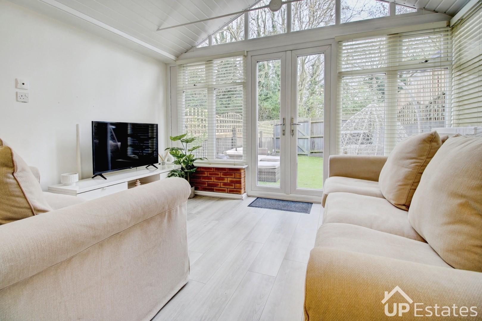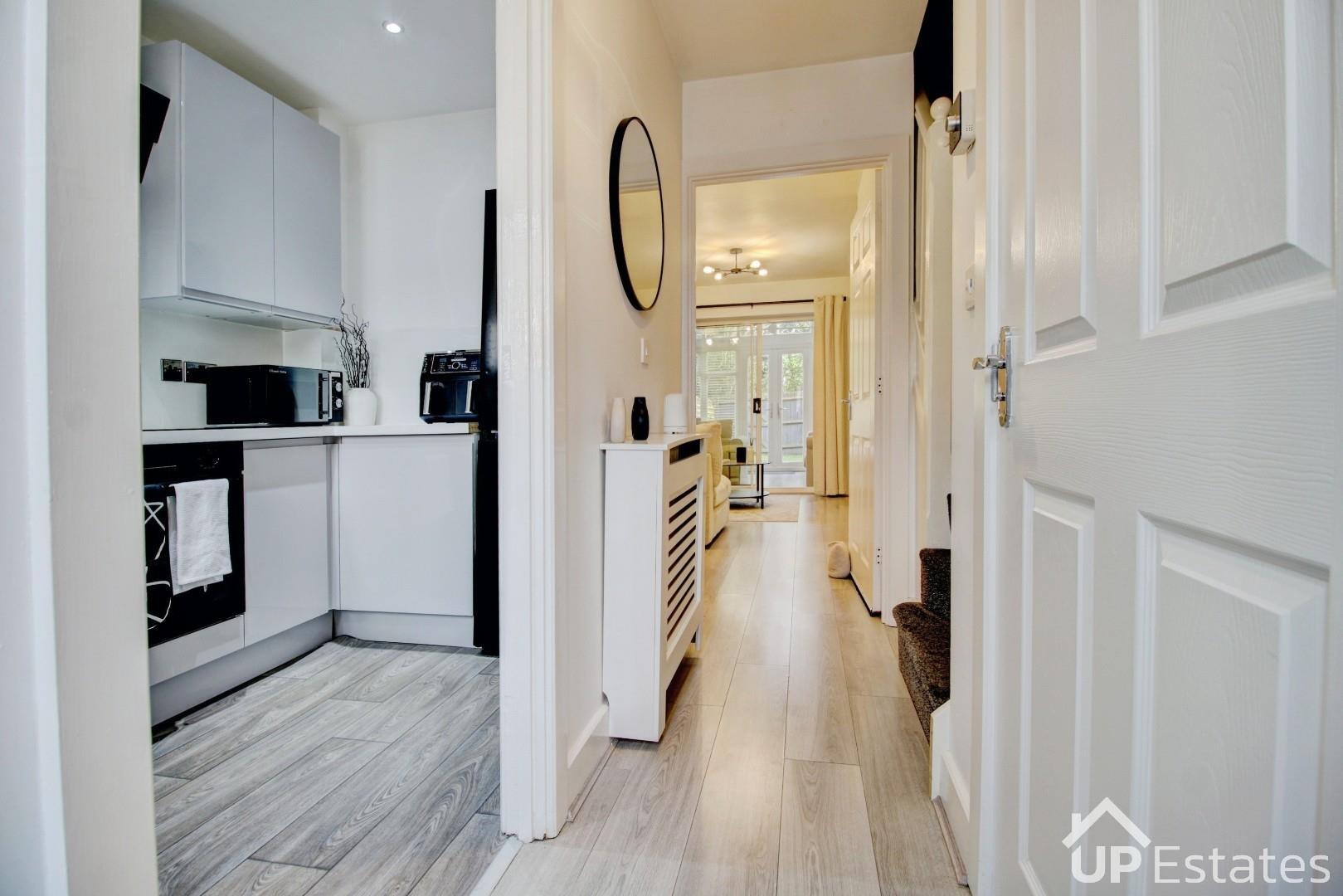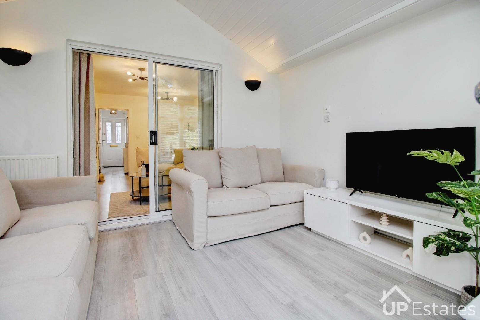 ** No Forward Chain - Extended & Immaculately Presented Family Home - Two Reception Rooms - Private Garden Backing Onto Woodland - High Spec Throughout - WC & Family Bathroom - Two Double Bedrooms With Integrated Storage - Driveway & Allocated Parking ** This is an exceptional opportunity to purchase a show home standard, extended home with no forward chain! Tucked away within a quiet cul de sac, this property very briefly comprises of; driveway (plus allocated parking space), entrance hall, WC, modern re-fitted kitchen with integrated oven, hob, extractor and inset sink with spray tap, allowing space for further appliances. Following on, the spacious lounge/diner is ideal for hosting or relaxing into the evening, there is also a beautiful feature media wall including inset electric fireplace. There are sliding doors that open to the versatile extended sun room, another reception rooms, which could double as a home office space or playroom. French doors lead to the private low maintenance garden! On the first floor off of the landing there are two double bedrooms with integrated storage, and the family bathroom. Viewing is essential to appreciate this home, call immediately to secure an appointment!