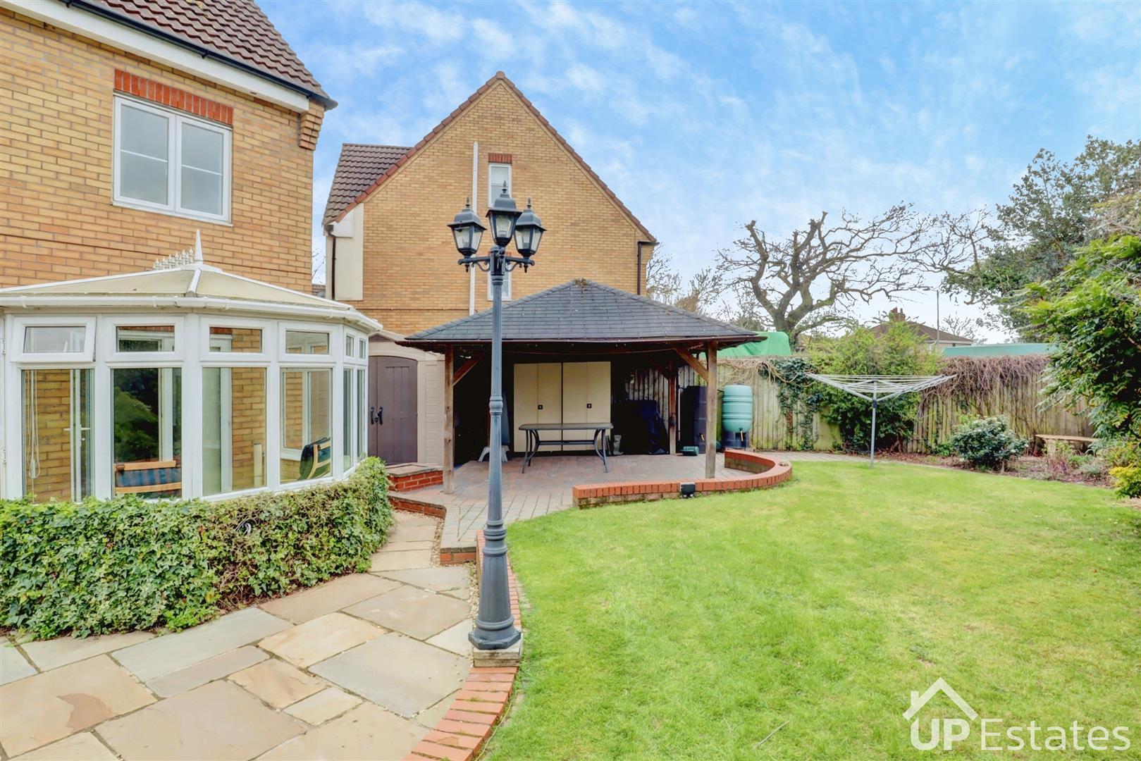 Externally, the property continues to impress with an integrated double garage, ideal for secure parking or additional storage. The private driveway provides off-road parking for multiple vehicles. To the rear, the garden and patio area create the perfect setting for outdoor dining, entertaining, or simply relaxing during the summer months.