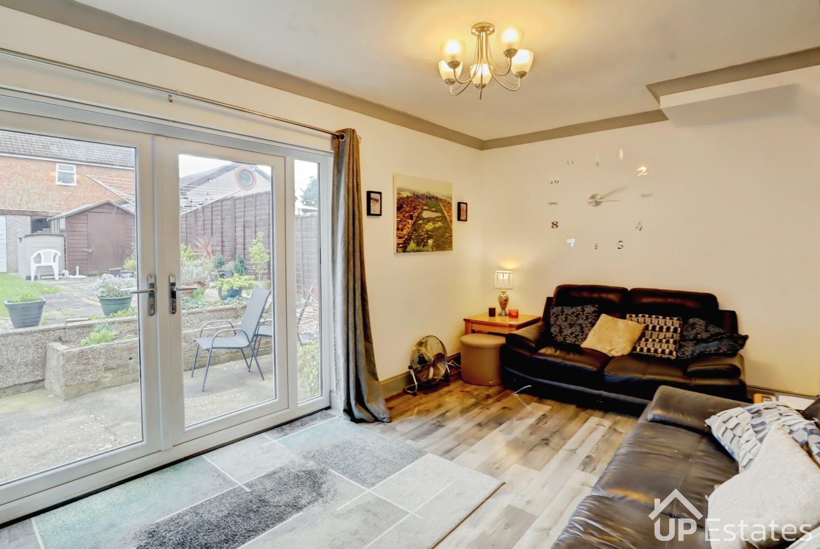 Adjacent to the kitchen, there is a practical utility area and a convenient downstairs WC, along with direct access to the rear garden. Completing the ground floor is the spacious living room located at the rear, benefitting from beautiful French doors that open out onto the patio and garden, perfect for indoor-outdoor living. To the first floor, the property offers three generously sized bedrooms alongside a modern family bathroom fitted with both a bath and overhead shower.