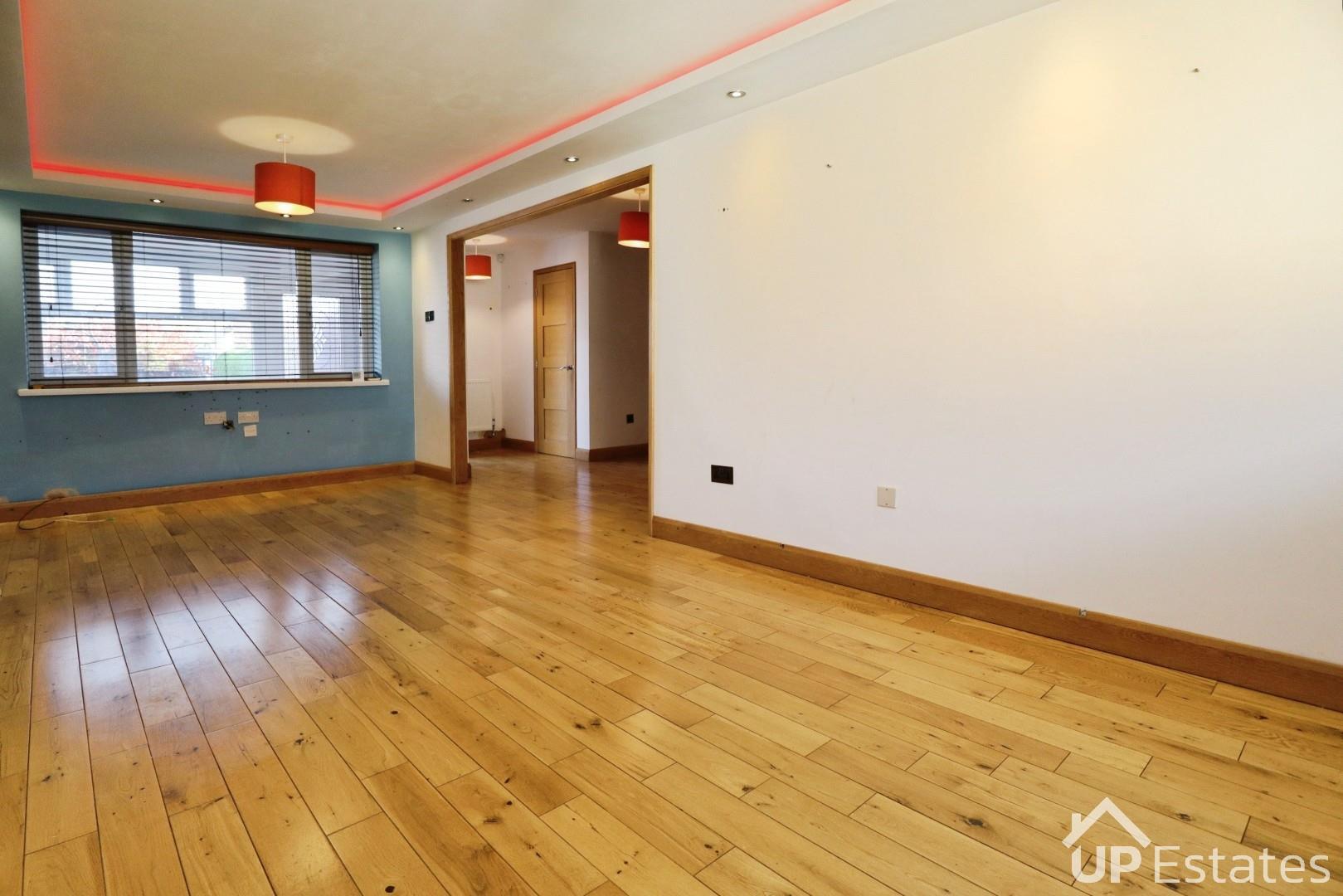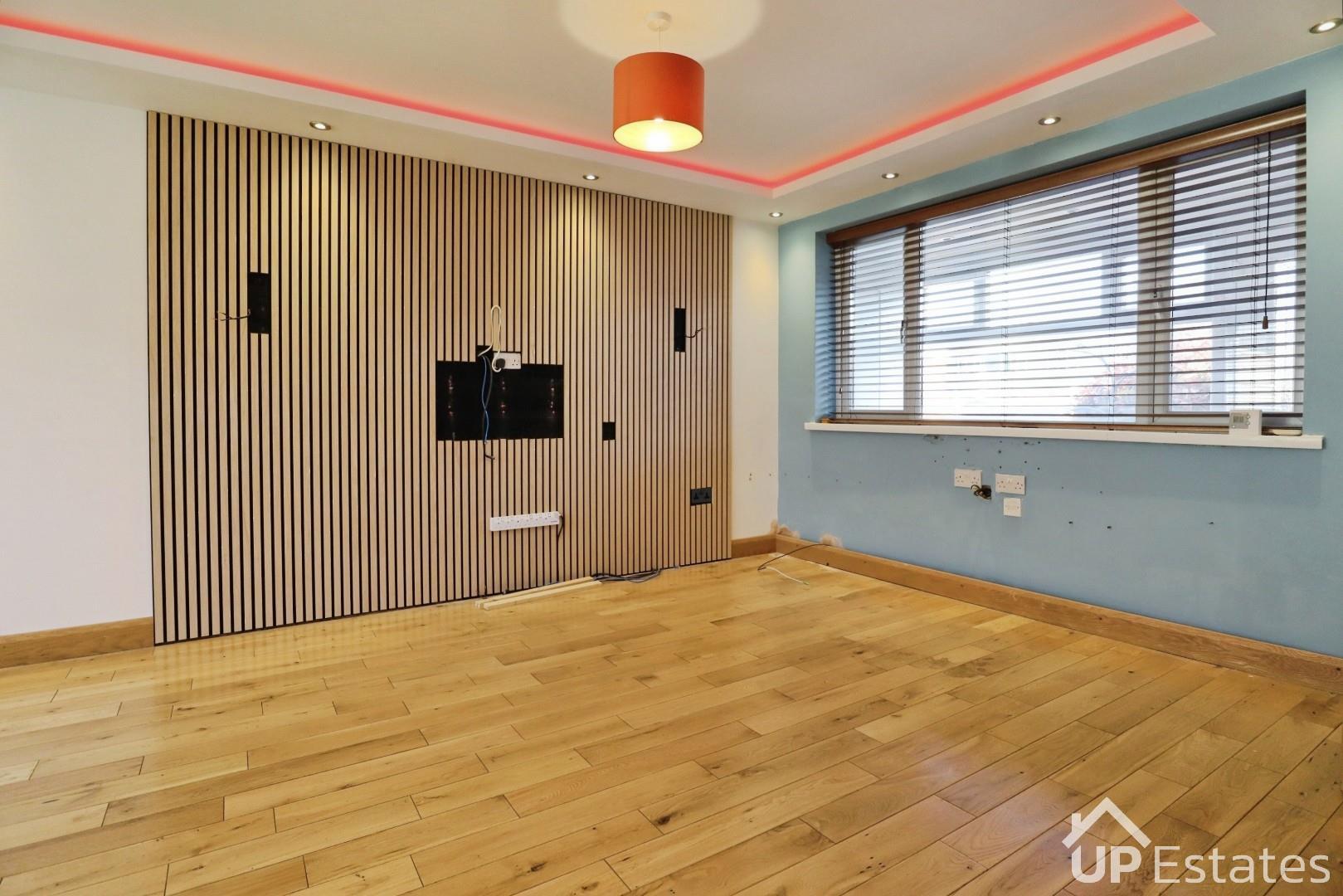 Inside, the property opens with a welcoming entrance porch and a convenient downstairs WC. The heart of the home is the impressive open-plan living and dining space, enhanced by contemporary colour-changing inset ceiling lights, creating a modern and versatile setting for both everyday living and entertaining. The modern fitted kitchen with granite worktops offers plenty of workspace and storage, with direct access to the garden. Downstairs has solid oak wood flooring throughout.