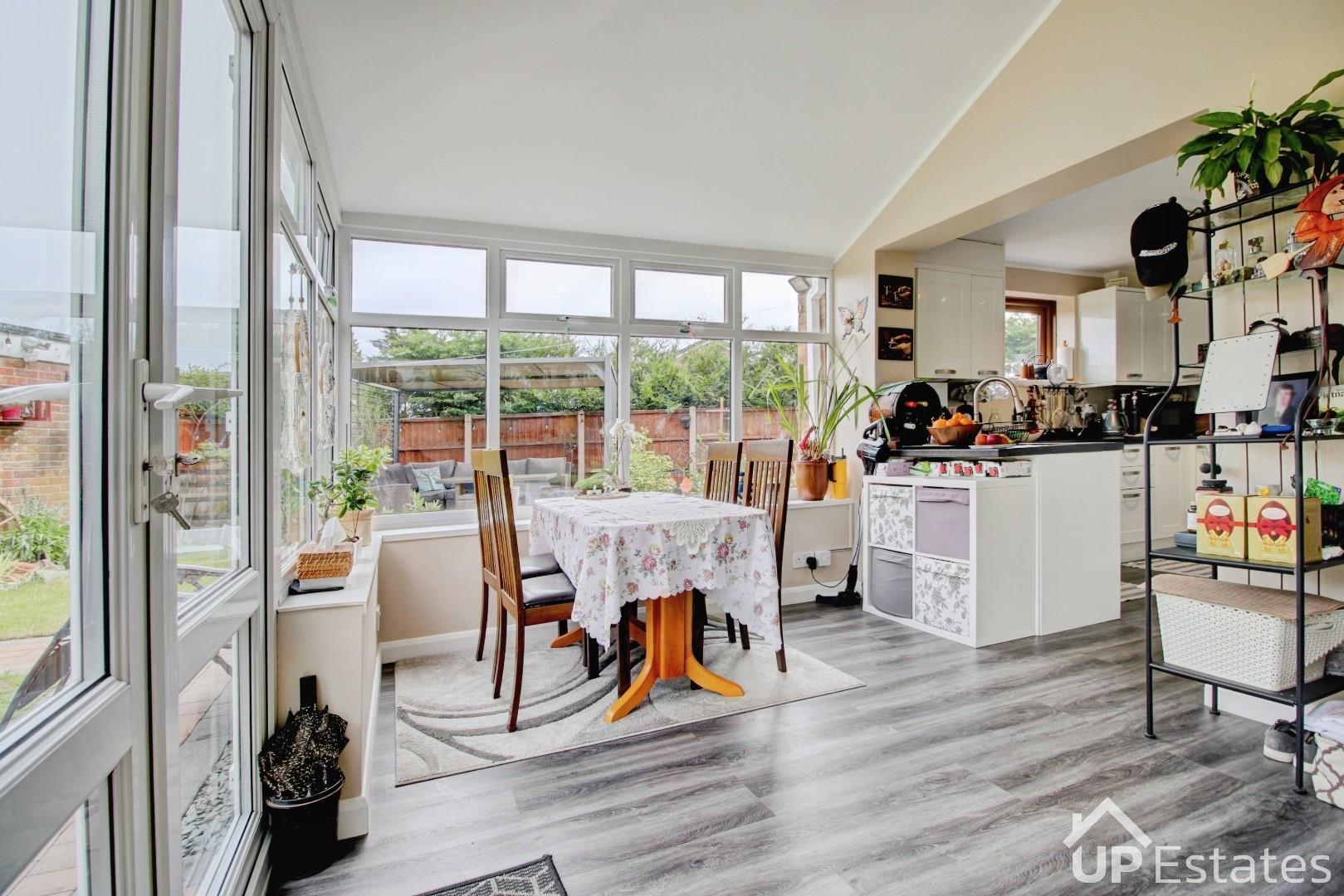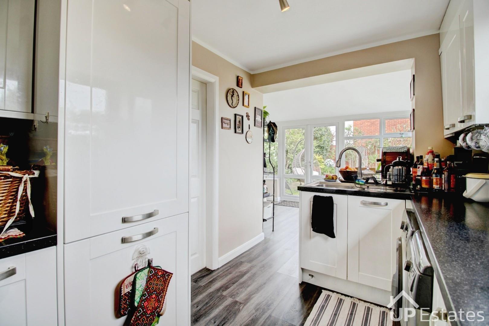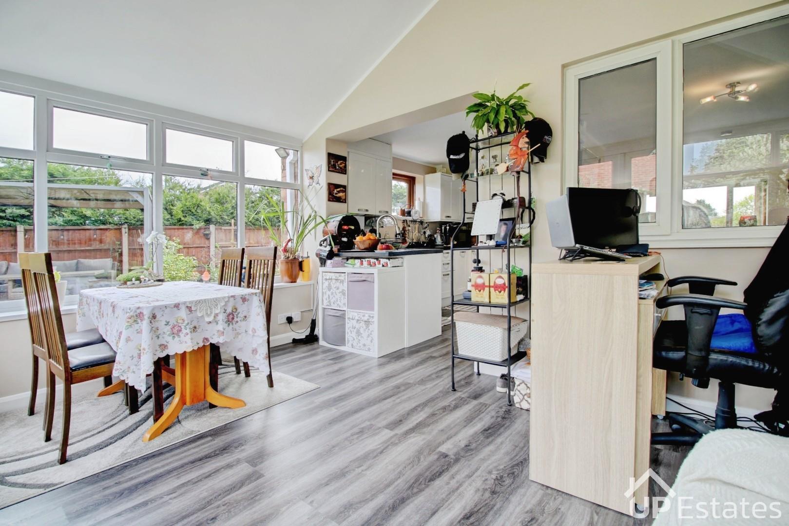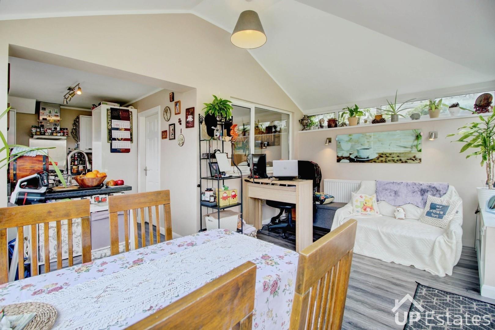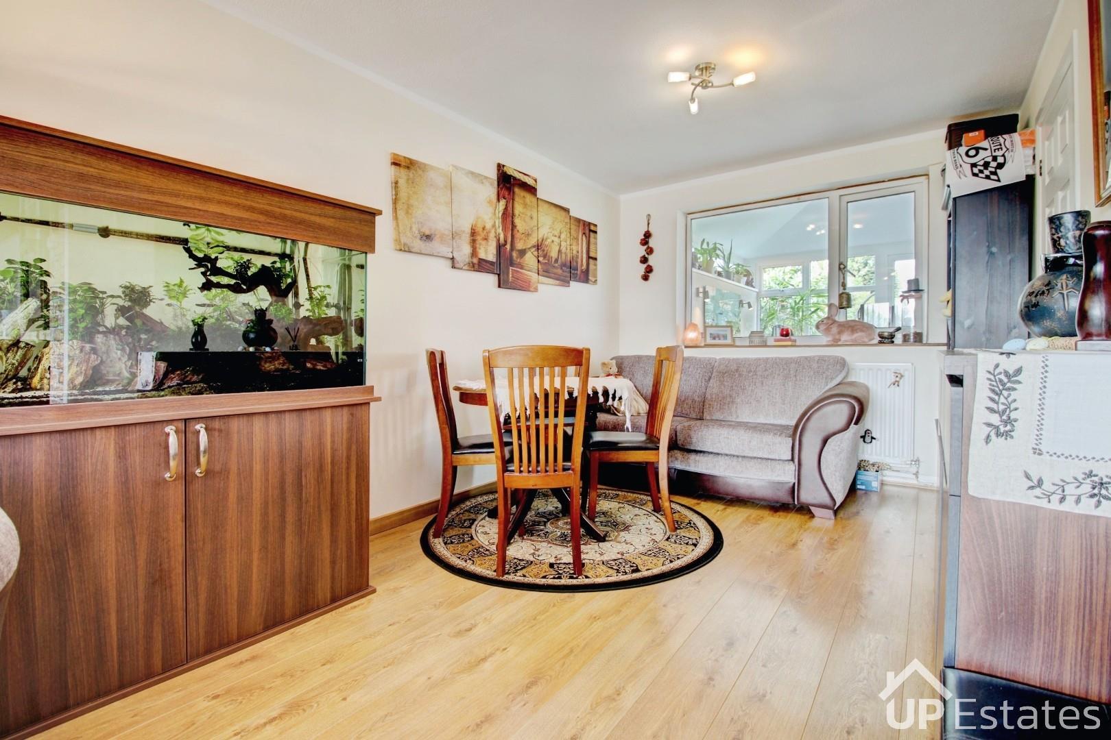 The well-appointed kitchen offers a range of wall and base units, integrated sink, oven, gas hob with extractor, and space for additional appliances. This seamlessly leads into the extended, year-round sun room—a versatile and light-filled space with an insulated roof, ideal for dining, relaxing or working from home. Patio doors open directly onto the garden, creating a wonderful indoor-outdoor flow.