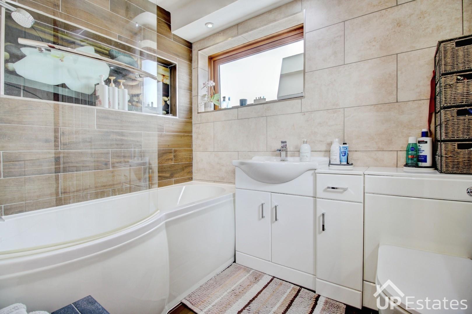 Upstairs, the property continues to impress with a bright landing benefiting from fitted storage, three well-proportioned bedrooms (with fitted wardrobes to the principal bedroom), and a modern family bathroom complete with a stylish three-piece suite and underfloor heating.