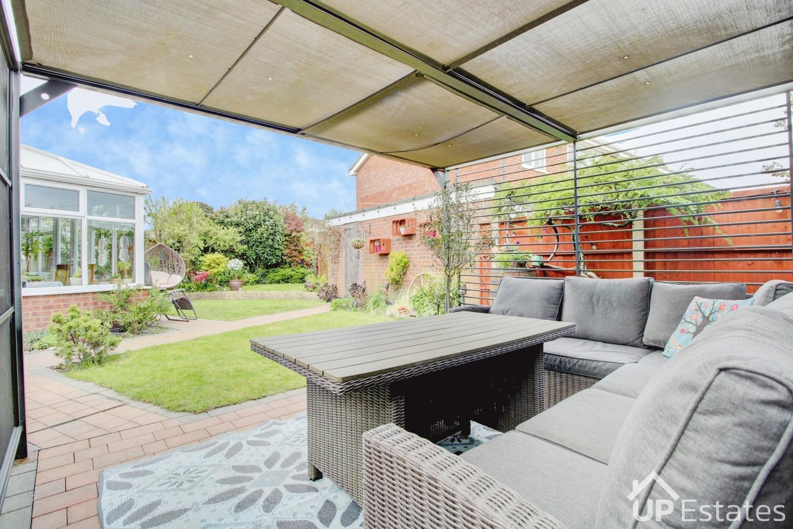 The wrap-around garden is a true standout feature—beautifully established and thoughtfully designed, with mature planting, multiple seating areas, a fixed sheltered pergola, and a dedicated allotment space. Enclosed by fencing and offering two access points, it provides both privacy and practicality.