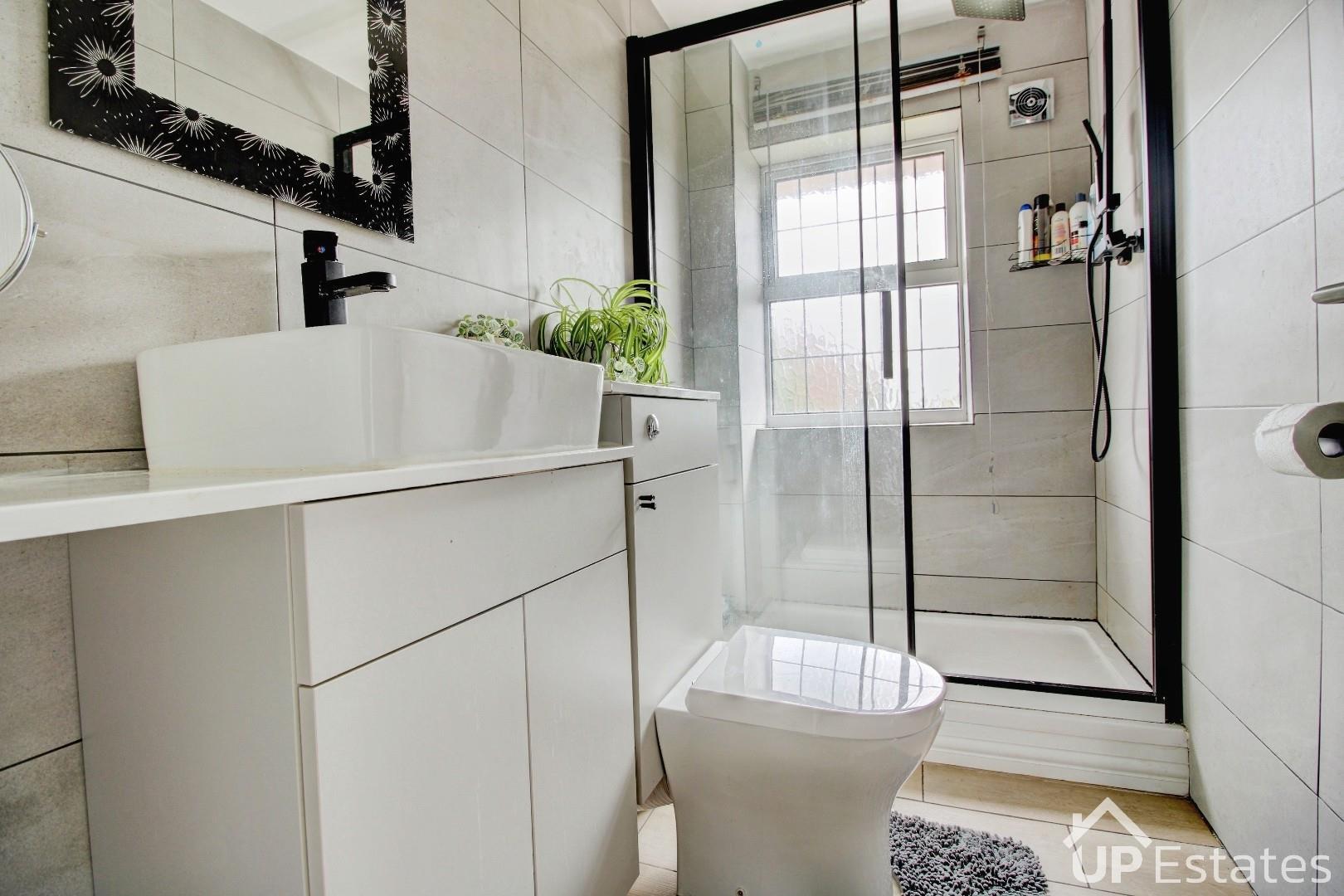 Upstairs, the property offers three well-proportioned bedrooms, all filled with natural light. The main bedroom benefits from fitted wardrobes, while the remaining rooms provide flexible space for family living, guests, or a home office. The contemporary family shower room was stylishly refitted in 2023.