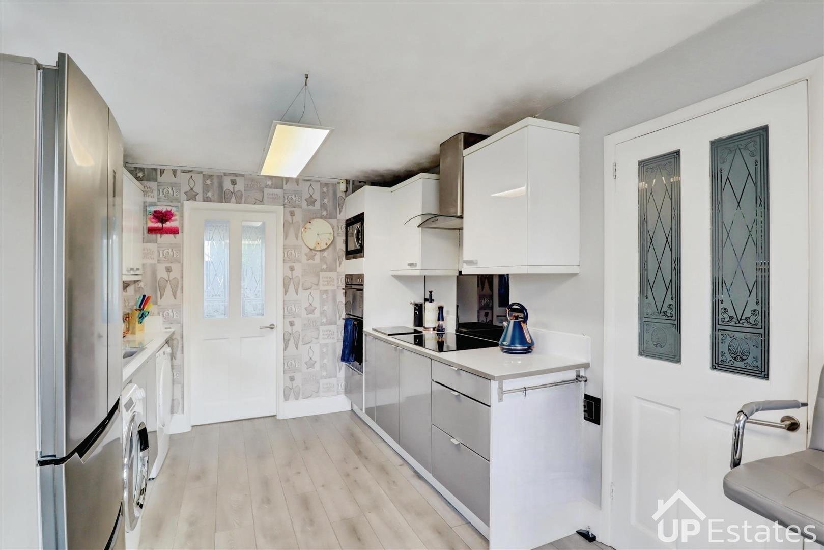 The dining area flows effortlessly from the living space, creating a sociable and flexible layout. To the front of the property, the modern kitchen is well-equipped with ample fitted units and worktop space, along with convenient side access leading to the garden and front of the home. Completing the ground floor is a useful WC, adding practicality for family living and guests alike. Upstairs, the property offers three well-proportioned bedrooms and a contemporary family bathroom. The main bedroom benefits from deep built-in wardrobes, providing excellent storage, along with a spacious private en-suite shower room for added comfort and luxury.