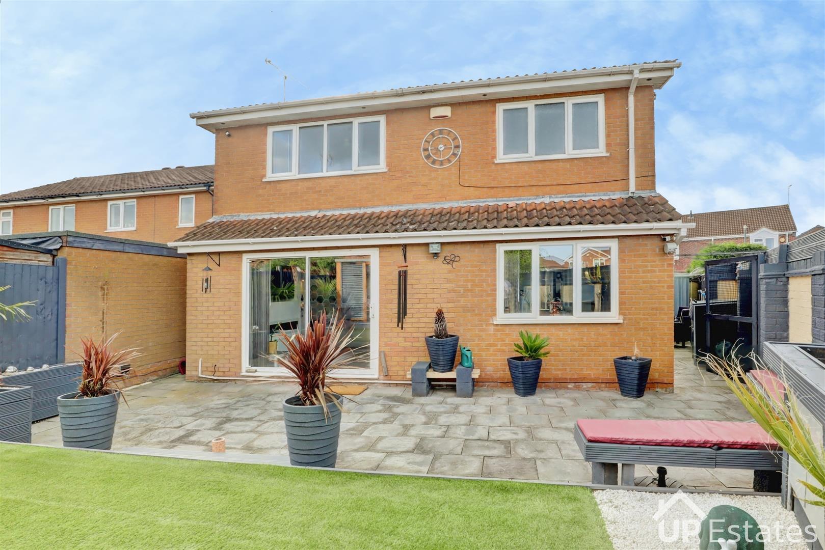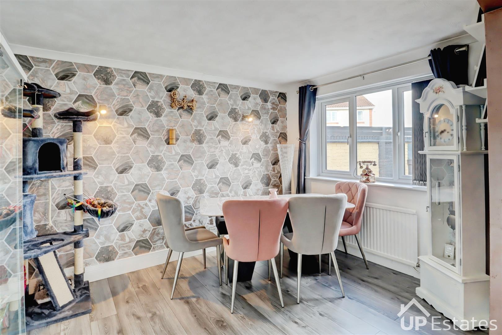 This beautifully presented three-bedroom detached home offers spacious and versatile living, perfect for modern family life. Upon entering, you are welcomed by a generous entrance hallway that sets the tone for the rest of the property. To the rear, the home opens up into a bright and airy open-plan living and dining space, ideal for both everyday living and entertaining. The living room is flooded with natural light thanks to sliding patio doors, which also provide seamless access to the landscaped garden and patio area—perfect for enjoying indoor-outdoor living during the warmer months.
