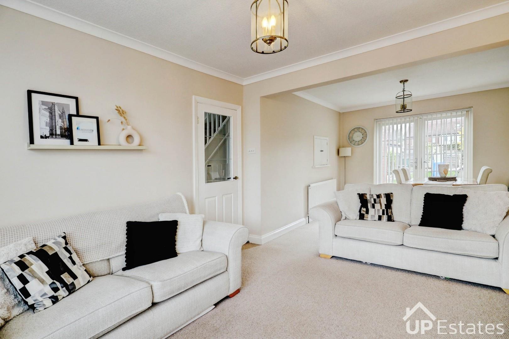 The ground floor features a bright and spacious open plan lounge diner, enhanced by a bay window to the front and double doors to the rear garden, creating a fantastic living and entertaining space. There is also a modern kitchen with direct access to the garden.