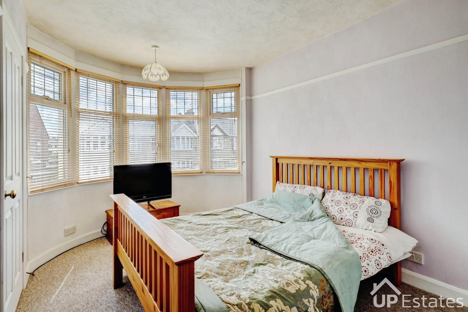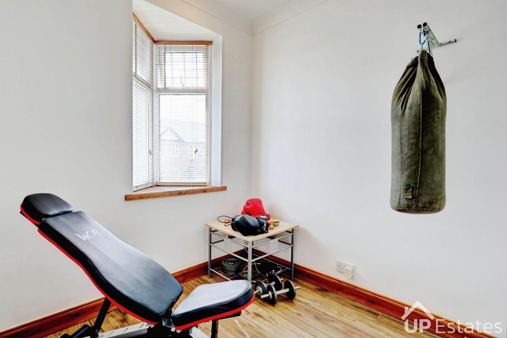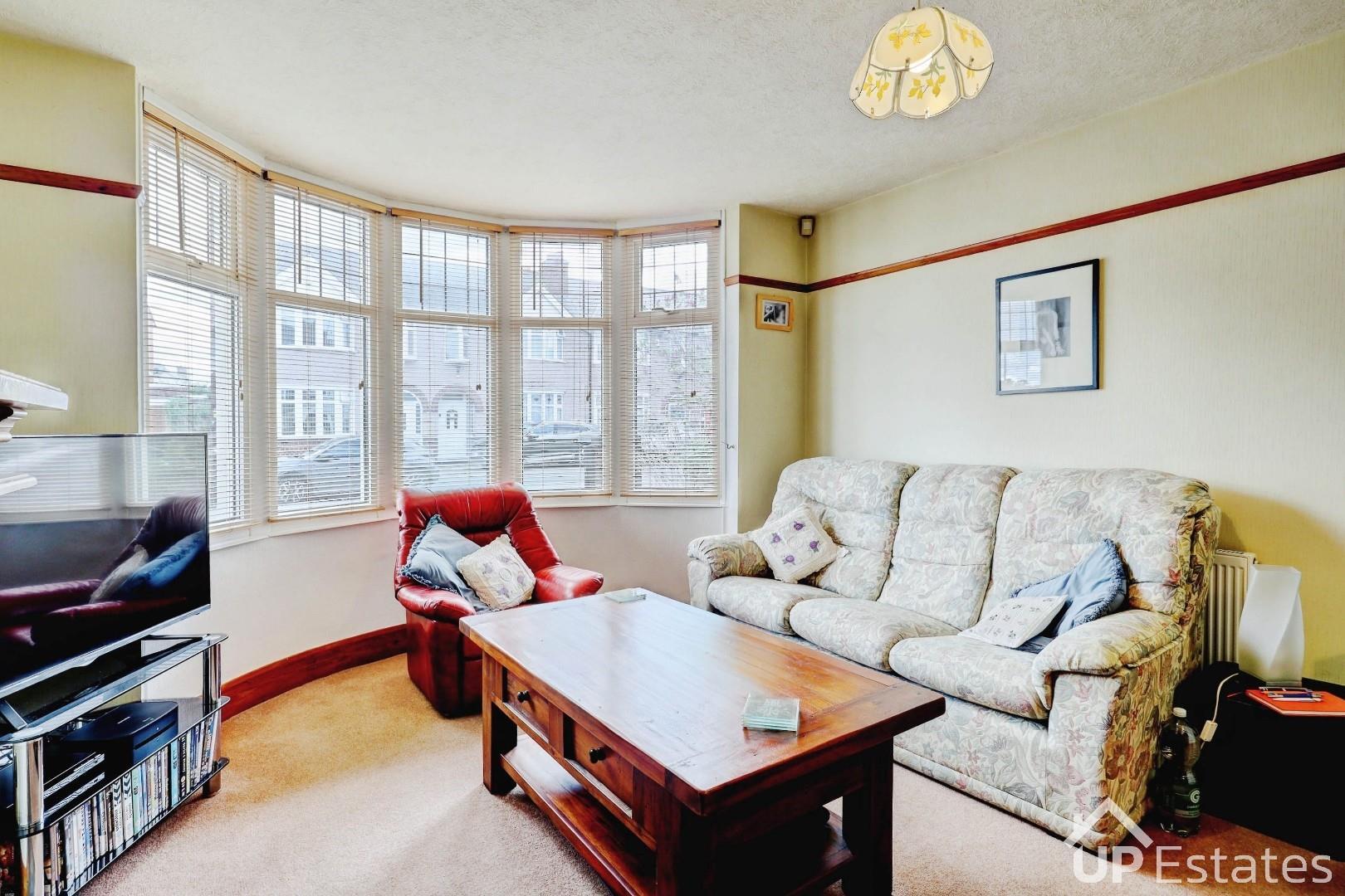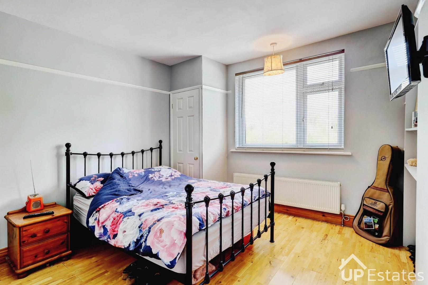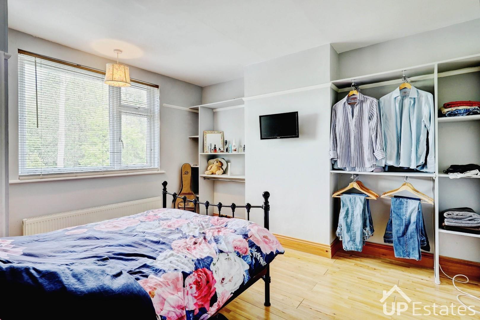 The ground floor comprises a spacious living room with a bay window to the front, along with a second reception room featuring a door leading out to the rear garden, offering flexible living and dining space. To the rear, there is a generous kitchen/breakfast room with direct garden access.