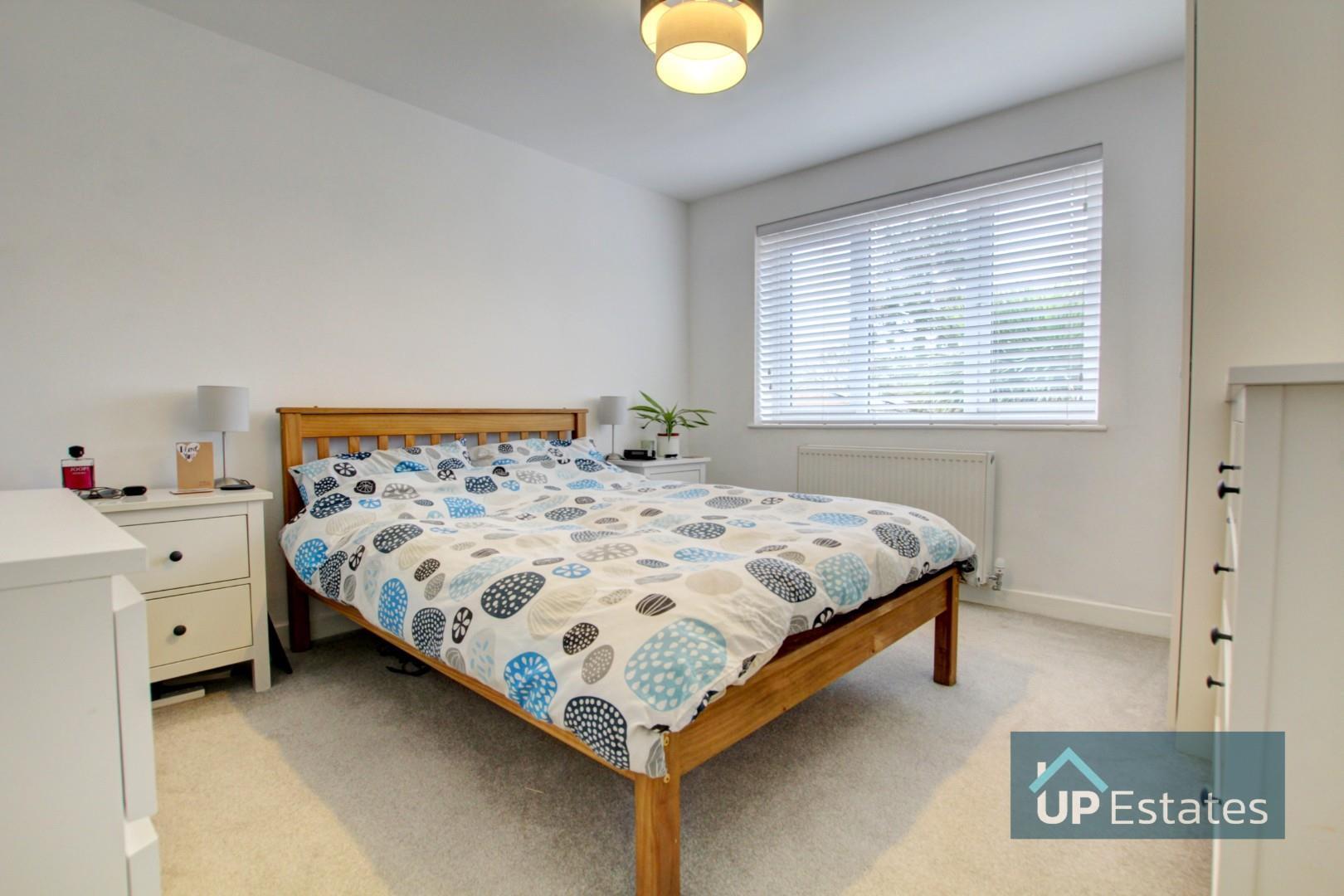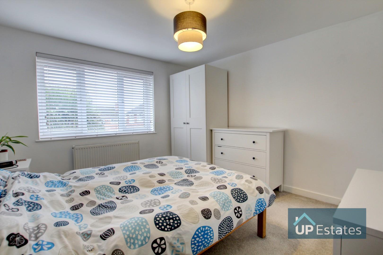 A double bedroom with double glazed windows, central heated radiator and integrated storage cupboard.