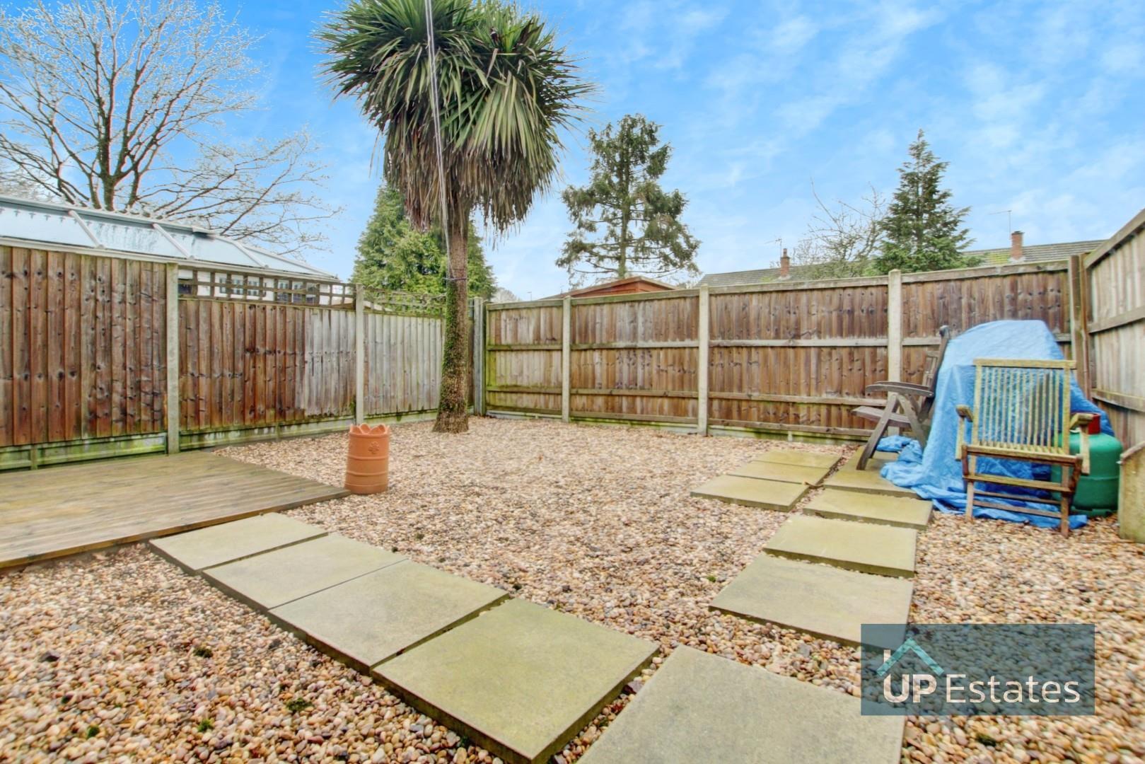 A low maintenance private garden initially decked followed by slabs, stones and allowing access to the large garage/workshop from the rear.